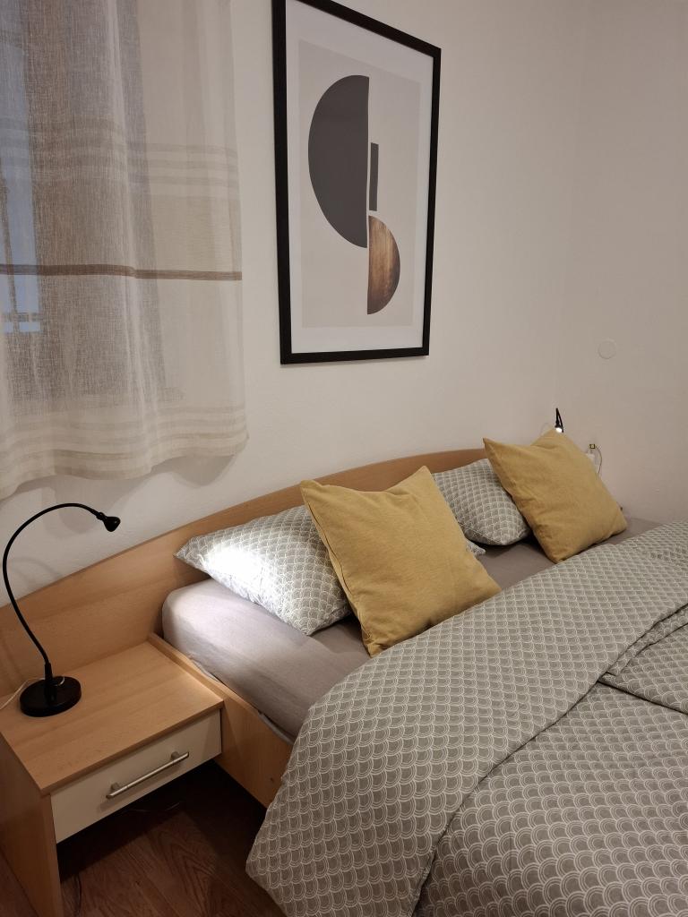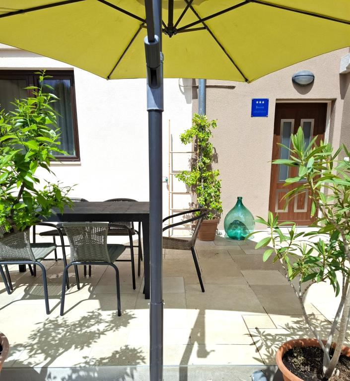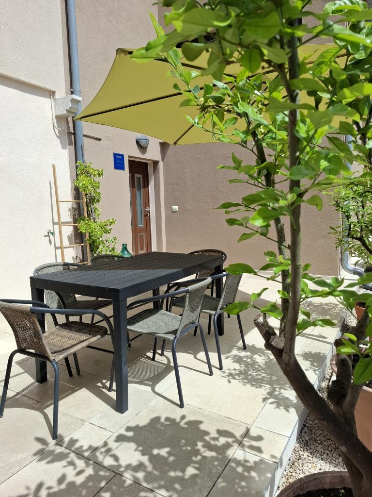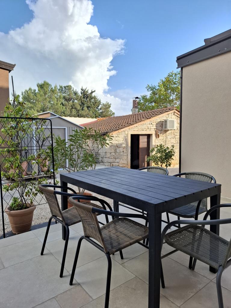 Pohodová atmosféra, poněkud venkovská, a na druhé straně blízkost moře a veškeré městské občanské vybavenosti činí z tohoto bytu ideální volbu pro rodiny a lidi, kteří hledají odpočinek a zábavu. Byt má 64 m2. K dispozici je také prostorná terasa se zahradním nábytkem. Hosté mají také přístup ke grilu a skladovací místnosti. V rámci bytu je bezplatné prostorné parkoviště. Byt se nachází v rodinném vinařství. Pokud máte rádi víno, můžete se zastavit na ochutnávku. Do centra města dojedete autem za 2 minuty. Do centra je to pěšky 25 minut.