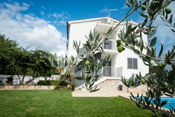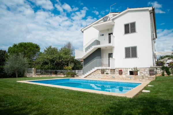 MOŽNOST PRONÁJMU CELÉHO DOMU AŽ 10 OSOB. Luxusní dům se dvěma pohodlnými a moderními apartmány, venkovním bazénem, zahradou a hlídaným parkovištěm. Dům se skládá ze dvou 4hvězdičkových apartmánů 105m2, pro 4 osoby s možností 2 přistýlek. Apartmány jsou komfortně, luxusně a moderně zařízené a dbají na každý detail. Kuchyň je vybavena všemi spotřebiči. Trezor, satelit, internet, možnost grilování. Velká terasa a zahrada, dvě ložnice, velký obývací pokoj, jídelna, koupelna, samostatné WC. Dům se nachází v malém malebném městečku Fjorini nedaleko Brtonigly a Novigradu, pouhé 2 km od moře a o krok blíže ke všem atrakcím, které Istrie nabízí – mnoho taveren, vinných sklípků, cest olivového oleje, středověkých měst, turistických center…