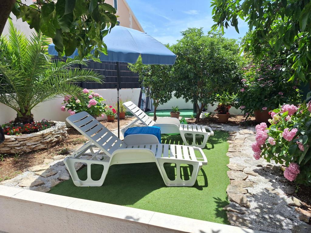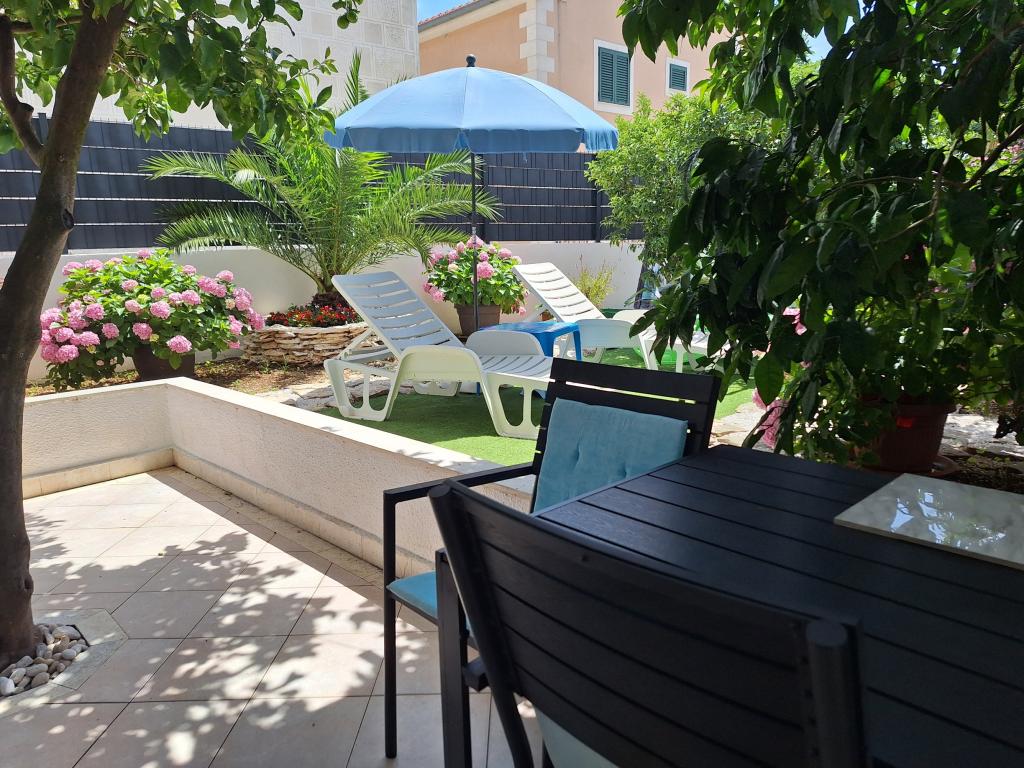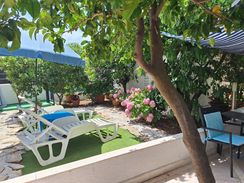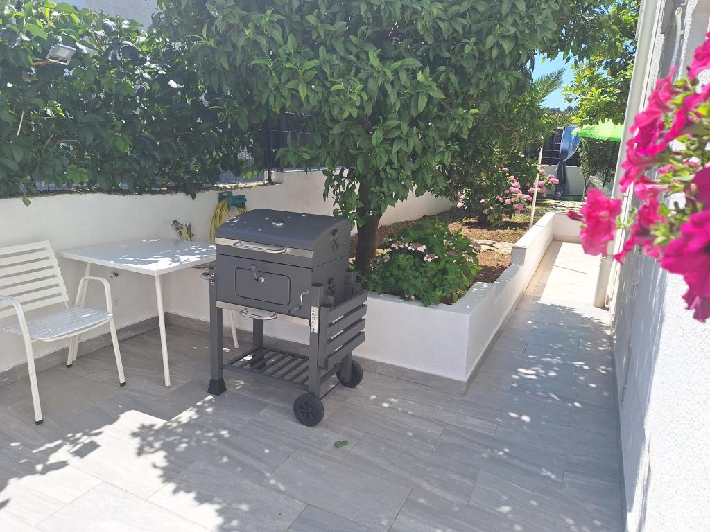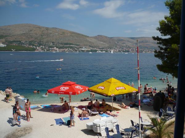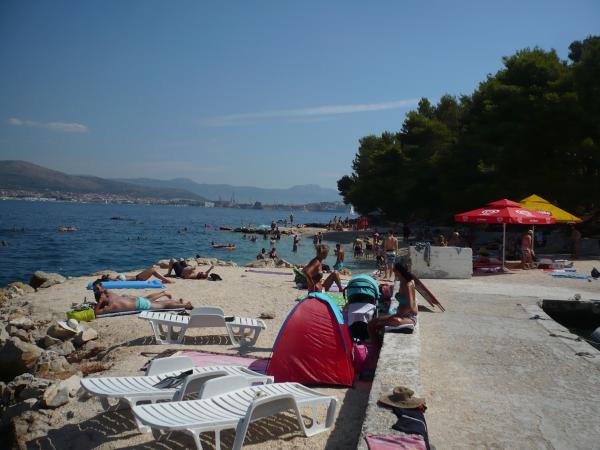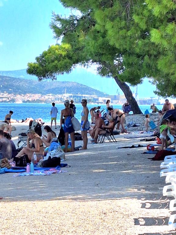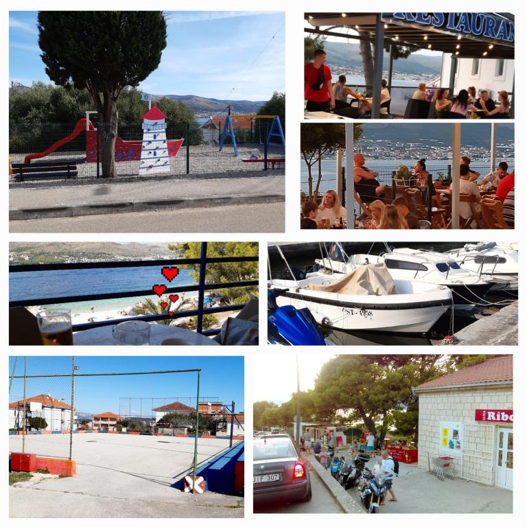 Skvěle vybavený (vše v ceně, i pobytová taxa), prostorný, Apartmán Gizella, v přízemí rodinného domu, s terasou, dvorem a parkováním, svou polohou nabízí klidnou, pohodovou rodinnou dovolenou v odstín pomeranče, citronu, mandarinky a krásné borovicové lesy, které se tyčí nad křišťálově čistým mořem, s možností procházek a cykloturistiky vedle olivových hájů a středomořských léčivých rostlin. Jste jediní hosté v zařízení a máte samostatný vchod. Oblázkové, kamenité a betonové pláže s parkovištěm, obchody, kavárnami, restauracemi, rychlým občerstvením, dětskými a sportovními hřišti, autobusem a bankomatem jsou vzdáleny pět až šest minut chůze. Zároveň, pouhých 8 km odtud, starobylé město Trogir, pod ochranou UNESCO, propojené mosty, v blízkosti národního parku Krka, ostrovů Šolta a Brač, nabízí dynamické výlety a zábavu. Blízkost letiště usnadňuje přílet a je možné zajistit transfer. Místo je malé, klidné a krásné. Srdečně vás očekáváme s welcome drinkem