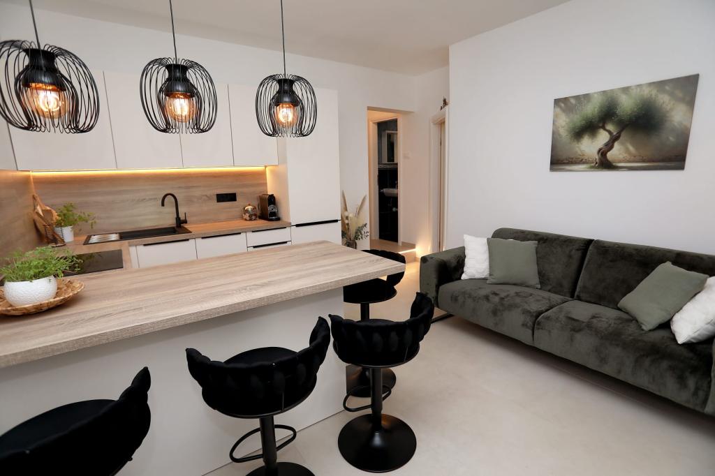 Apartmán Katija se nachází v Okrug Gornji, pouhých 30 m od pobřeží. Náš apartmán nabízí dokonalou kombinaci klidu, pohodlí a okouzlujícího výhledu na četné dalmatské ostrovy. Je to ideální destinace pro rodiny, páry a každého, kdo hledá odpočinek v přírodním prostředí, daleko od davů, a přesto blízko veškeré potřebné občanské vybavenosti. Vychutnejte si ranní kávu nebo večerní západ slunce na vaší soukromé terase, kde na vás čeká úchvatný výhled. Jen 5 minut chůze odtud se nachází dobře udržovaná pláž vhodná pro děti, s mělkou vodou a přirozeným stínem - ideální pro rodinnou dovolenou. Hlavní vlastnosti apartmánu: blízkost moře, terasa s krásným výhledem, plně vybavená kuchyň s jídelním koutem a obývacím pokojem, dvě ložnice s manželskými postelemi, koupelna se sprchou a základním vybavením, bezplatné Wi-Fi, klimatizace, TV, bezplatné parkování. Ať už plánujete aktivní dovolenou, nebo si chcete jen užít slunce a moře, náš apartmán v okrese Gornji nabízí vše, co potřebujete pro nezapomenutelný pobyt.