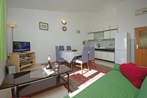 Soukromý dům se nachází v jihozápadní části ostrova Čiovo v klidné oblasti. Vzdálenost od nejbližší pláže 50 m. Oblázková pláž vhodná pro malé děti ve vzdálenosti 300 m. Apartmány jsou moderně vybaveny, včetně klimatizace, pračky a bezplatné Wi-Fi. Oba apartmány mají prostorné balkony s krásným výhledem. Nejbližší obchod s potravinami a restaurace jsou vzdálené 5 minut jízdy