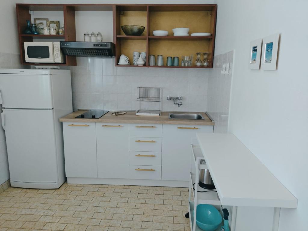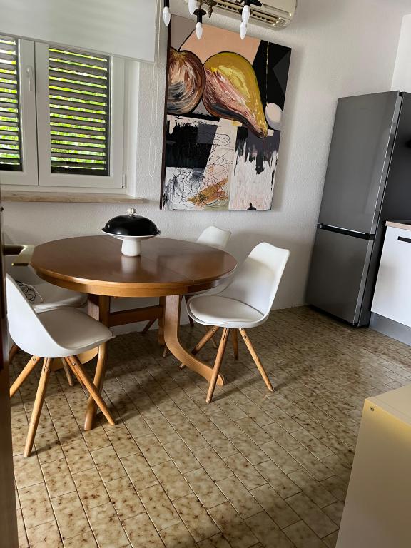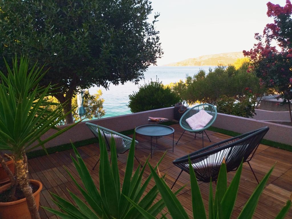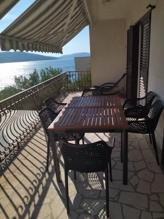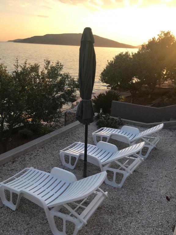 Rodinný dům se dvěma samostatnými byty, které lze pronajmout samostatně nebo společně. Apartmány se nacházejí na pláži (1. řada) a vnější schody vedou přímo na pláž. To je méně než 30 m od moře s velkými balkony s krásným výhledem na moře a ostrovy. Obchod, restaurace a kavárna jsou vzdálené 15 minut chůze, takže místo poskytuje naprosté soukromí a klid.