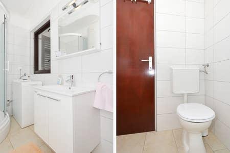 Vítejte v Holiday Home - Jasna Prostorný a pohodlný rekreační dům s fantastickým výhledem, první řada k moři. Celý prostor je hostům k dispozici. V domě se může ubytovat 7 hostů (5 2). Prostředí je tiché, bez hluku, ideální pro relaxaci, zatímco restaurace, bary, centrum jsou do 1 km. Dům má obytnou plochu 100 m2 plus velkou terasu. Skládá se z obývacího pokoje, jídelny, plně vybavené kuchyně, klimatizovaného (přízemí). V prvním patře jsou 2 ložnice (1. ložnice má manželskou postel a balkon s výhledem na moře; 2. ložnice má 1 manželskou postel a 1 samostatné lůžko a klimatizaci). Koupelna se sprchou a pračkou se nachází v prvním patře, zatímco toaleta je v přízemí. K dispozici jsou v ceně dvě parkovací místa před domem.
