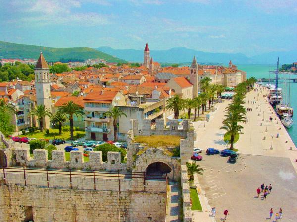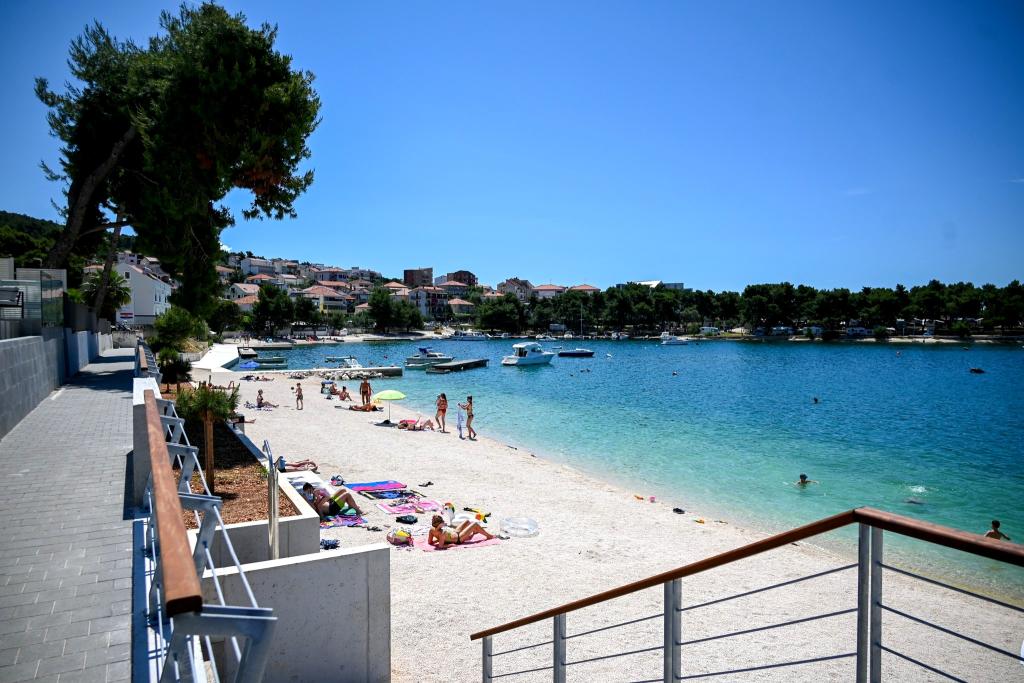 Náš dům – Apartmány Tomi – se nachází v první řadě u moře, hned vedle písečné a oblázkové pláže na ostrově Čiovo, pouhých 1500 m od města Trogir, které je na seznamu UNESCO. Centrum je vzdálené 10–15 minut chůze. Trogir je starý přes 2300 let a je známý svými úzkými uličkami, kamennými domy a bohatým letním životem. Naše apartmány jsou vzdálené pouhých 50 m od pláže, ideální pro rodiny s dětmi a každého, kdo miluje dovolenou u moře. Pláže se táhnou kilometry a nabízejí slunce i přírodní stín. Vedle domu je obchod a každý host má k dispozici parkovací místo. Apartmány jsou moderně zařízené, klimatizované a vybavené vším, co potřebujete pro příjemnou dovolenou. Ať už přijíždíte s rodinou, partnerem nebo přáteli, Apartmány Tomi jsou tou správnou volbou pro relaxační letní pobyt v srdci Dalmácie.