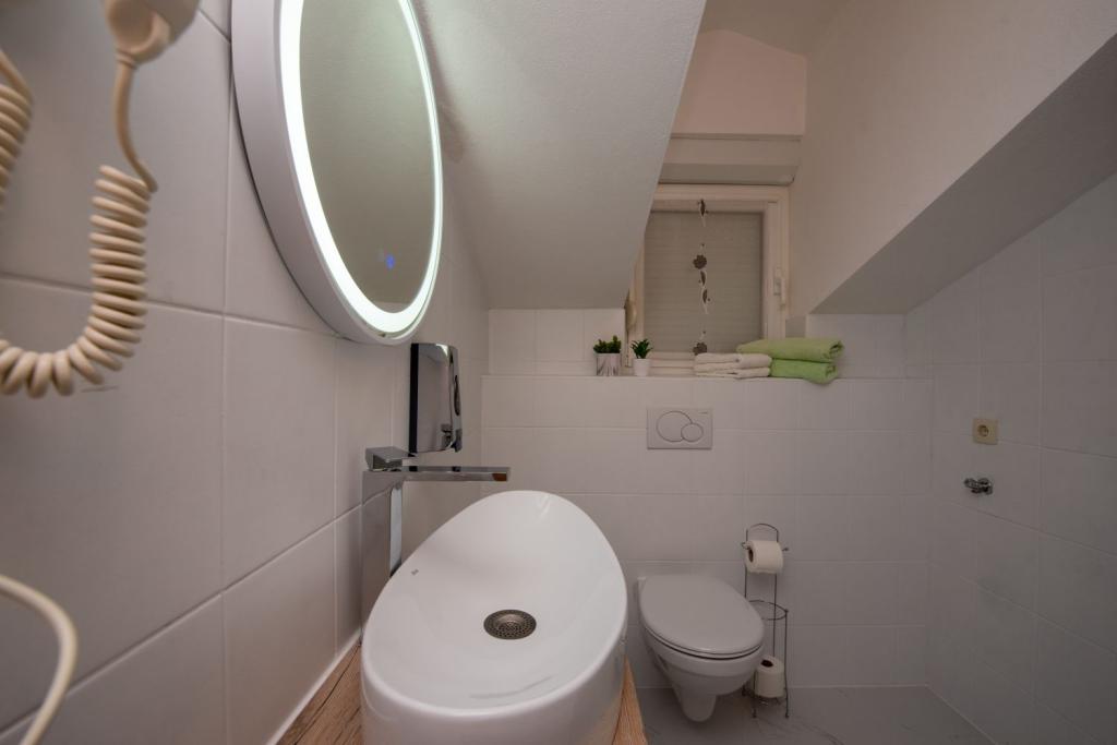 Když jsme přišli, mysleli jsme si, Ó můj Bože, kam nás cesta vede z Trogiru, ale když jsme spali, mohli jsme cítit moře, ticho, slunce, ... Skvělý výhled na moře z balónků, hostitelé jsou navíc milí, ochotní a veselí. Dělají dobrou domácí kávu. Trogir je asi 10 minut chůze, mini market je blízko, restaurace také, jsem čistě pět! Doufám, že se znovu vrátím do Trogiru.