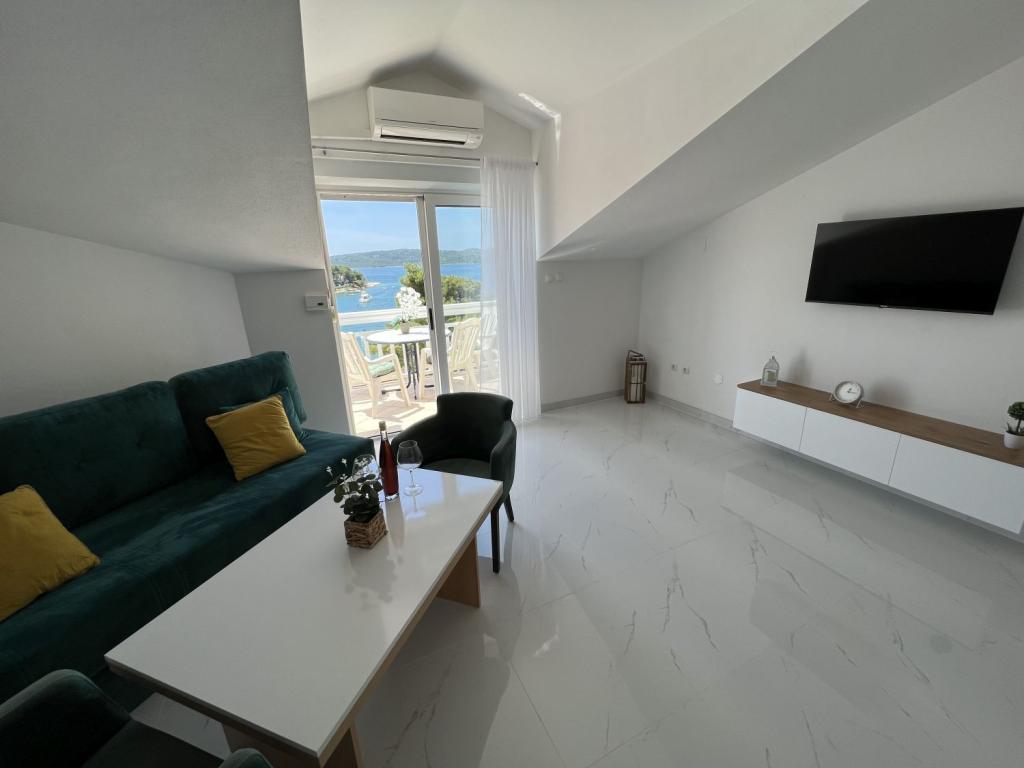 Vynikající byt, dva balkony s výhledem na moře a dobře vybavené. Klimatizace, Smart TV a pohodlné postele. Skvělí a ochotní majitelé. Parkování na pozemku. 1 minutu na intimní pláž. Obchod v bezprostřední blízkosti. Doporučit!