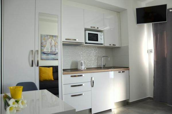 Studio je ideální velikost pro pár. Čisté a tiché. Kuchyň byla moderní a měla slušné množství spotřebičů a vše ostatní, co byste mohli potřebovat v kuchyni. Zkratka do centra města. V blízkosti malé pláže. Z balkonu jsme měli nádherný výhled na moře. Přátelští hostitelé!