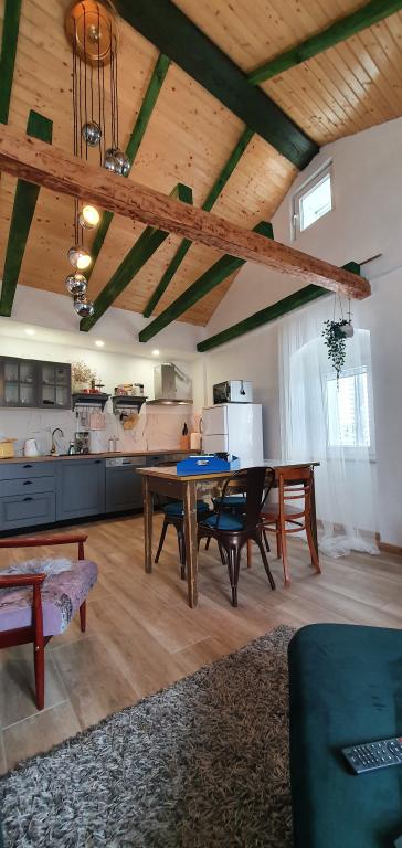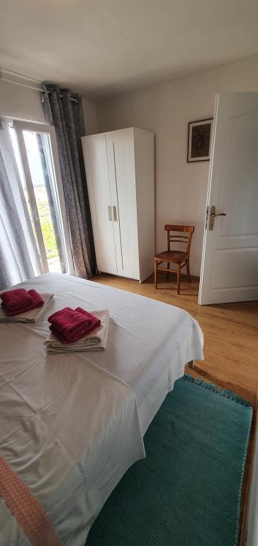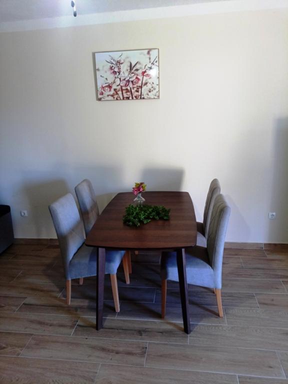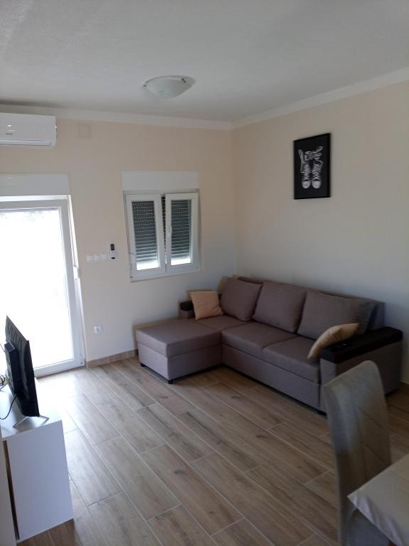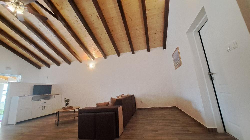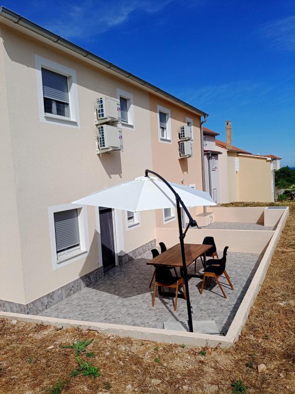 Apartmán s výhledem na moře. Má dvě terasy. Použití grilu. Klimatizace v každém pokoji Klimatizace v přízemí Od centra a moře pěšky 10 min. Byt se nachází na okraji obce a nachází se mimo hluk. Auto je možné zaparkovat na pozemku ve vlastnictví zařízení. Byt byl postaven a vyzdoben v roce 2020.