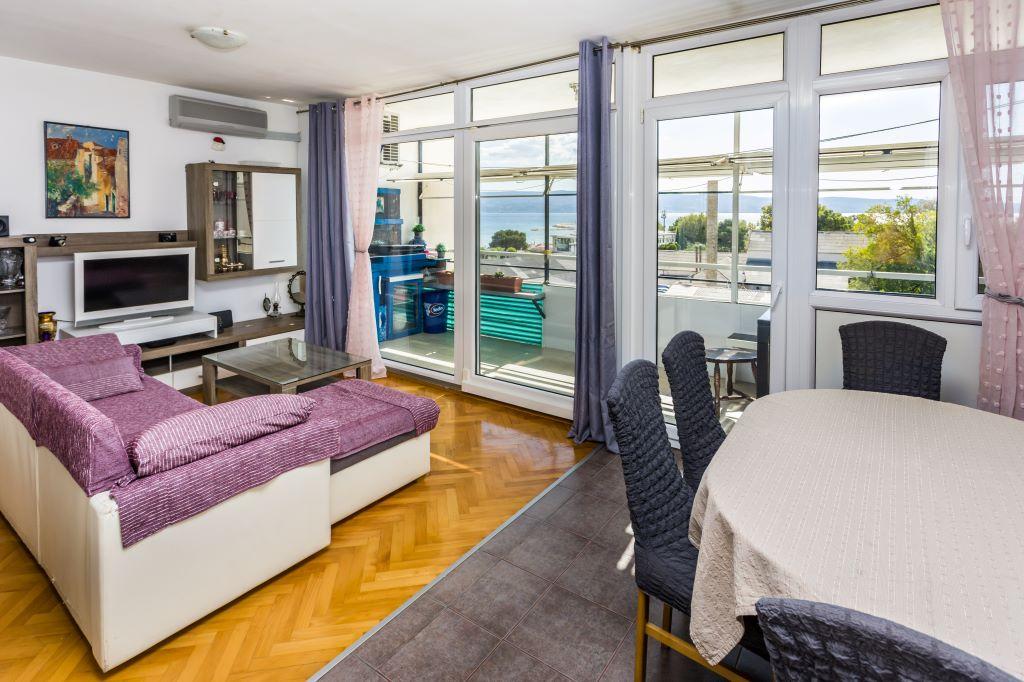 Byt se nachází v samém centru Omiše a nachází se v první řadě u moře s velkou písečnou pláží. Centrum města je vzdáleno jen pár metrů, stejně jako restaurace, trhy, lékárny a veškerá další občanská vybavenost. Nachází se také v blízkosti řeky Cetiny, takže jsou vám k dispozici všechny aktivity, které můžete využít (rafting, kajak, zip line, výlet na čtyřkolkách, projížďky na lodi...). Parkování se nachází v blízkosti budovy na veřejném prostranství a stojí 20 €/týden. Byt je prostorný, má 3 ložnice, velký obývací pokoj s velkou rozkládací pohovkou, 1,5 koupelny a terasu. Může ubytovat 7 osob.