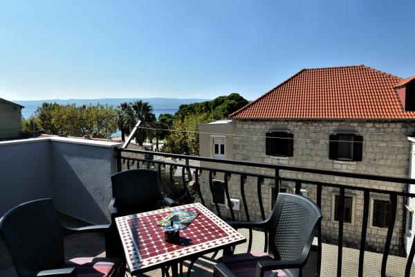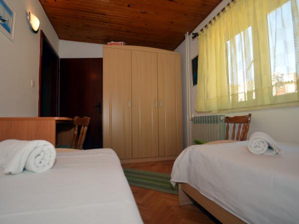 Byt (77 m2) se nachází 2 minuty chůze od centra města, ve 3. patře rodinného domu. Skládá se ze 2 dvoulůžkových pokojů (jedna s manželskou postelí a druhá s dvěma samostatnými lůžky, které lze propojit), komfortní obývací pokoj s pohovkou (2 přistýlky), obývací pokoj s plně vybavenou kuchyní, WC / vana / sprcha, terasa 25 m2) s výhledem na moře, centrum starého města a nedalekého kopce, wi-fi, klimatizace, pračka, myčka, ... Vzhledem k tomu, že v centru města není taková možnost, parkoviště je zajištěno na veřejném parkovišti (100 - 450 m) na náklady majitele. Veškeré akce (kulturní, zábavné, sportovní, rekreační atd.) Se konají v bezprostřední blízkosti tohoto ubytovacího zařízení. K dispozici je pouze 4-5 minut chůze: velká písečná pláž vhodná zejména pro děti a neplavce, vynikající restaurace, kavárny, hospody, trhy, obchody, lékárny, ambulance, banka, pošta, směnárna, místní autobusové nádraží, výletní přístav ....