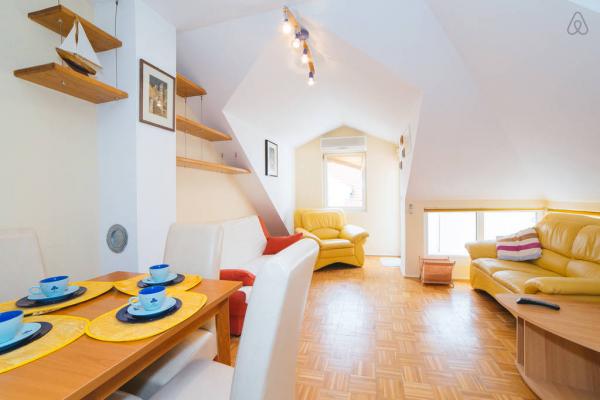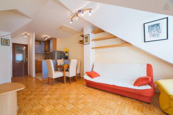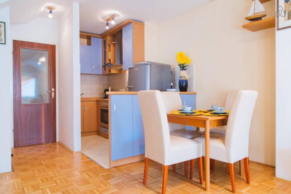 Plně vybavená moderní půdní vestavby. Podlahová plocha je 50 m2 a skládá se z jedné ložnice s manželskou postelí, jednoho, obývací pokoj, kuchyň a koupelna. .Stan Se nachází ve čtvrtém patře klidné budově, má pancéřové dveře, klimatizaci a velký balkon. Centrum města je jen 200 m, stejně jako na písečné pláži nebo na pláži v kempu. 50 m od domu je autobusová zastávka, pokud se rozhodnete navštívit Split a Makarska. V obci je možnost denního odjezd na ostrov Brač a Hvar. Ve městě je mnoho agentur, které organizují výlety a nabízejí celou řadu sportovních aktivit. Hostitelé jsou k dispozici pro všechny vaše potřeby.