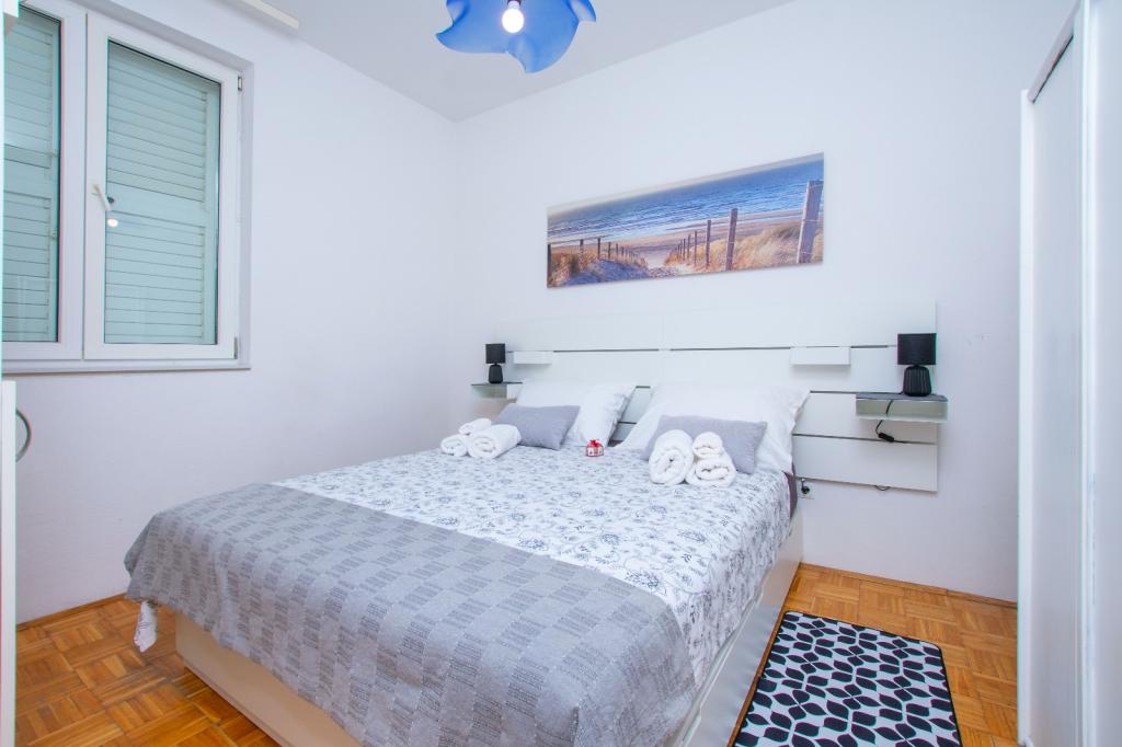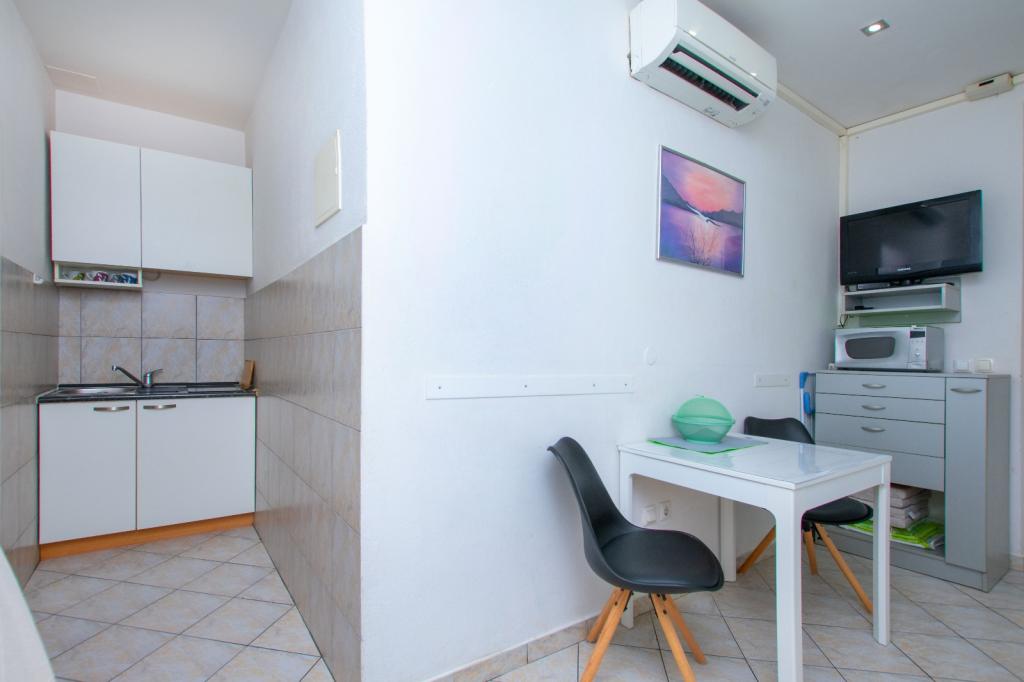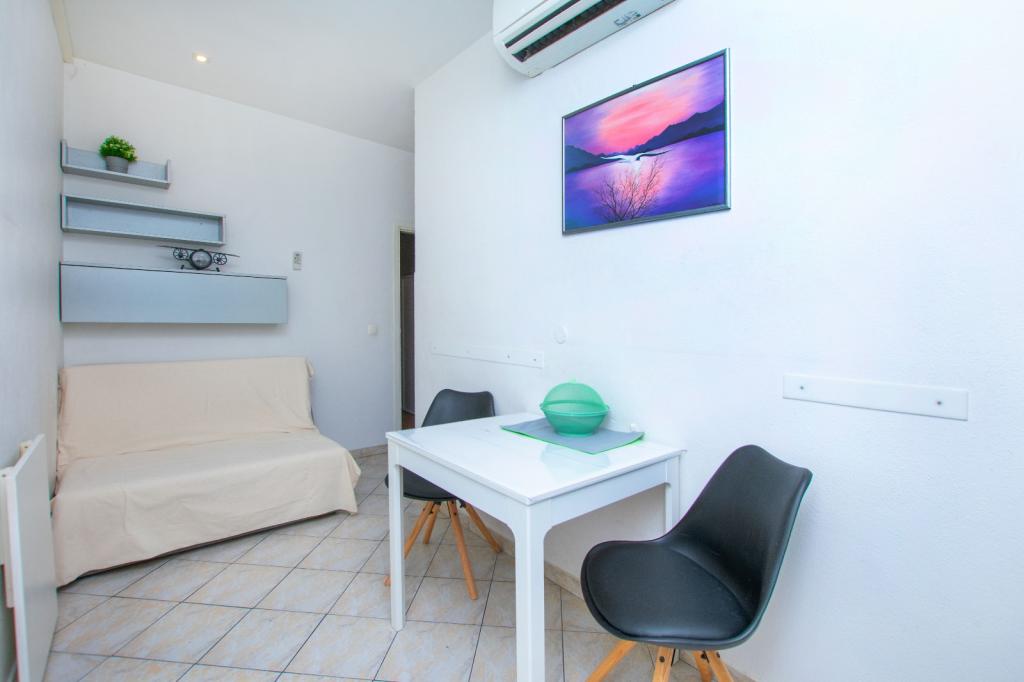 Apartmán „Piccolo“ se nachází 5–10 minut chůze od starého města Omiše a asi 5–7 minut chůze od pláže (Velika plaža). Má rozlohu 25 m² a skládá se z obývacího pokoje s jídelním koutem a malou kuchyní, samostatné ložnice a koupelny se sprchou a pračkou. V dobře vybavené kuchyni najdou hosté mikrovlnnou troubu, lednici, sporák, kávovar, varnou konvici a nádobí. Apartmán byl částečně zrekonstruován v roce 2024, je klimatizovaný a má posezení s TV. Nachází se v bytovém domě, ve vysokém přízemí – samostatný vchod přes schodiště v jižní části budovy. Pro hosty je k dispozici bezplatné parkování a Wi-Fi (v ceně). Typy postelí: 1 manželská postel a rozkládací pohovka. Počet osob: 2.