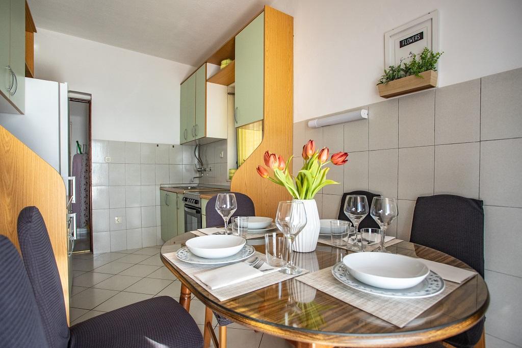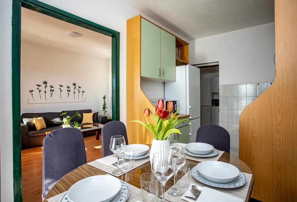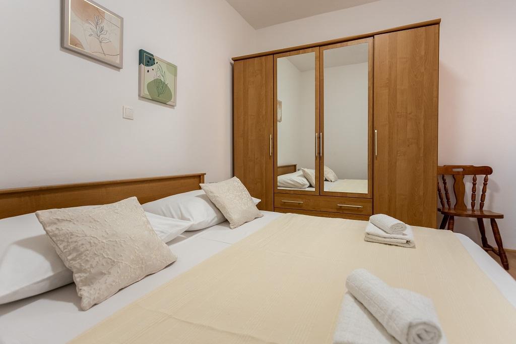 Budova je 10 minut chůze od centra města a písečné pláže. Nachází se v klidné části Omiše. Parkovací místo pro 1 auto je zajištěno v blízkosti budovy a je bezplatné. Omiš je malé místo, takže všude dojdete pěšky, aniž byste nastartovali auto. Byt je opravdu velký se 3 ložnicemi a velkou terasou, která Vám nabízí krásný výhled na celý Omiš.