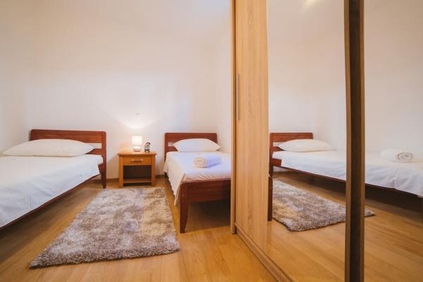 Byt nabízený k dispozici se nachází v 1. patře rodinného domu Rivarolli postaveného v centru starého města Omiš v blízkosti všech hlavních městských bodů - řek, pláží, městského trhu, rybího trhu, restaurací ... ranní káva pod širým nebem. Máte-li zájem o aktivní dovolenou, můžeme zajistit výlety lodí, canyoning, rafting, cyklistiku nebo jiné aktivity.