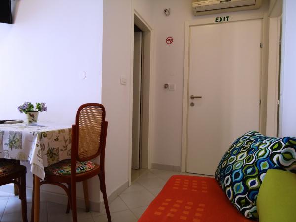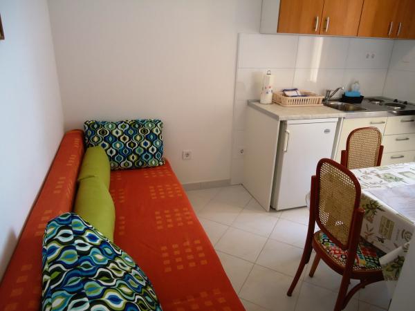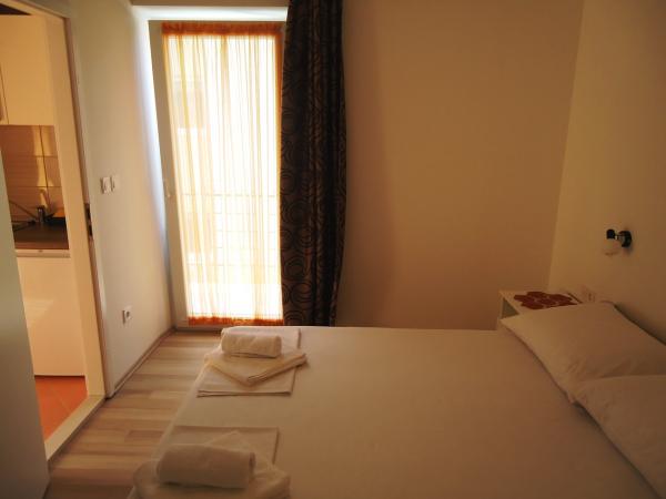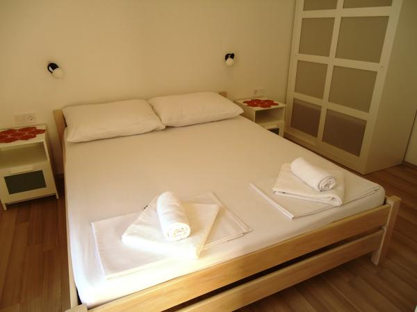 Dva apartmány Bobbi se nacházejí ve druhém patře zrekonstruované budovy v samém centru Omiše, obklopené zelení, jen 20 m od starého centra města a 50 m od hlavní městské pláže (5 minut chůze). V blízkosti se nachází četné kavárny, restaurace, výchozí místa pro různé výlety (rafting, výlety lodí na řece Cetina, lanovka, historické památky, dětský zábavní park atd.). Apartmány byly postaveny v roce 2015, klimatizované, manželská postel pro dva, oddělená ložnice, pohodlný gauč pro další dva (rozměr 160x200) nebo jednu osobu (rozměr 140x200) v obývacím pokoji, ložní prádlo, ručníky, kuchyň s elektrickým sporákem ( 2 talíře) , lednice s mrazákem, varná konvice, veškeré příslušenství, nádobí na přípravu a servírování jídel, stůl pro 3 a 4 osoby, TV, satelit, wi-fi internet. Jeden byt má dva balkony, druhý je bez balkonu. Kouření je povoleno pouze na balkonech.