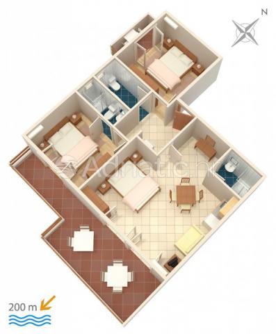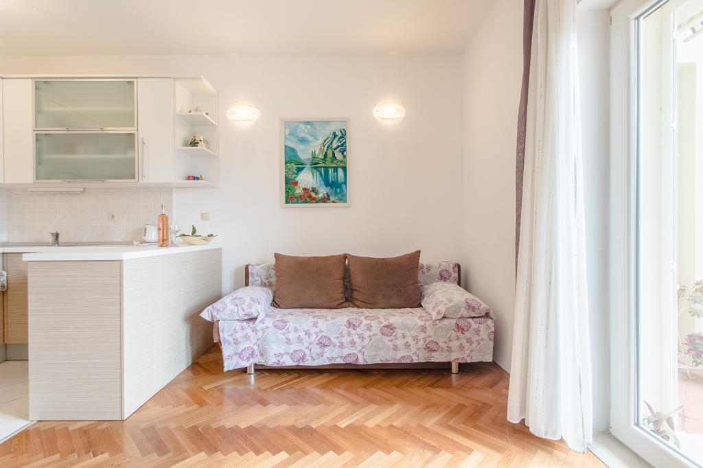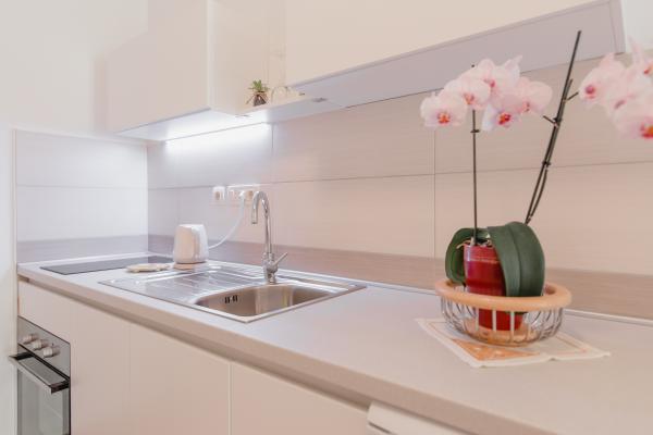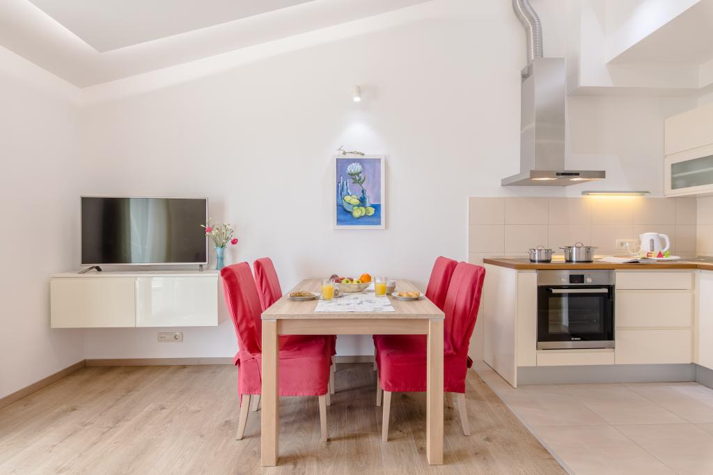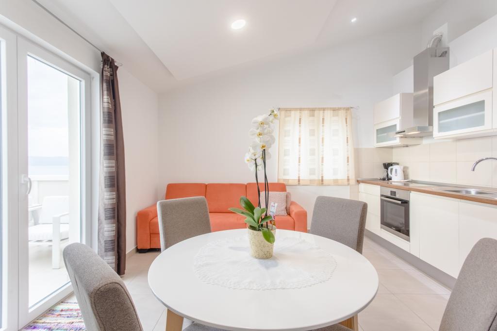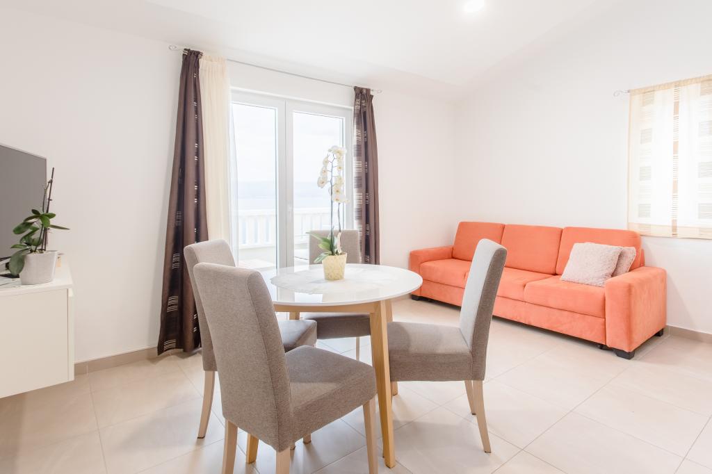kopletno zařízené apartmány v klidné obci Duce, klimatizací s možností parkování, pouhých 100 metrů od moře a 1 km od města Omiš.