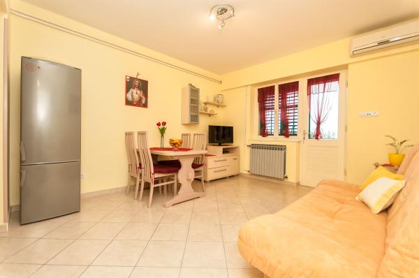 Moderní apartmány, kuchyně obsahují vše, co potřebujete, můžete přijímat a ručníky pro tuširanje.U malý podkrovní byt také vejde a přistýlka pro dítě do 10 let nebo dítě krevetić.Dijete do 3 let zdarma až 3 roky je 10 eur za day.In velkého bytu také vejde a pátá osoba na přistýlce v obývacím pokoji, který je obviněn z 10 EUR za danu.Klima nejsou zahrnuty v ceně a bude účtován extra 7 eur za den, pokud host chce.