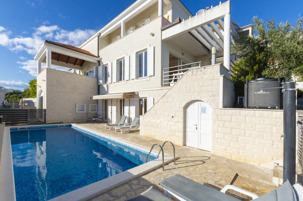 Pobytová taxa je v ceně.Každý z našich hostů je při příjezdu vítán uvítacím nápojem. Pro všechny naše hosty můžeme také pronajmout loď nebo motorový člun, zorganizovat rafting na řece Cetině, výlety na ostrov Brač atd. Všechny apartmány mohou využívat venkovní gril. Parkování je zajištěno pro všechny apartmány přímo vedle vily. Krásné oblázkové pláže jsou od vily vzdálené 30 metrů. Bazén je určen výhradně pro velké luxusní apartmány typu A 14+2 (vila - samostatný dům), ostatní apartmány bazén využívat nemohou. Bazén je tedy využíván výhradně a pouze velkým luxusním apartmánem (vilou), ostatní apartmány nikoli. Vila s bazénem (velký apartmán typu A 14+2) je samostatná budova. Vila s bazénem má sedm dvoulůžkových pokojů, čtyři koupelny s toaletami, jednu samostatnou toaletu, dva obývací pokoje, posilovnu se saunou, šipkami, basketbalovým košem atd. Všechny ostatní apartmány (typ A 2+2, Studio +2 a A 4+2) se nacházejí v jiné samostatné budově, která je od vily s bazénem vzdálena 6 metrů.