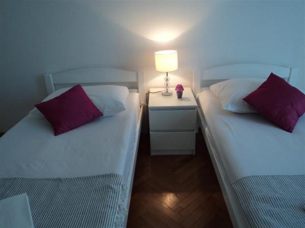 Pobytová taxa je v ceně.Satelitní TV a klimatizace ve všech apartmánech, přátelští hostitelé ... WIFI připojení k internetu, cena zahrnuje ubytování, a daňové a rekreační poplatek! Pláž je snadno přístupné, žádné schody, nebo s minimálním počtem kroků, pod 10, malé šlunak a písku, idylické pro rodiny s malými dětmi a osoby na invalidním vozíku. Bar a restaurace jsou jen 100 až 150 m, na trhu 200 m, v blízkosti Festival dalmatských sbor-700m, Hotel Brzet-200 m, hotely, Beach-600m-600m posilovna, mini-golf-650m. Čerpací stanice je 1 km, autobusová zastávka 20 m, vlakové nádraží-20 km, letiště, 40 km, trajekt a křídlové-20 km, Hotel Lav-Meridian 15 kilometrů.