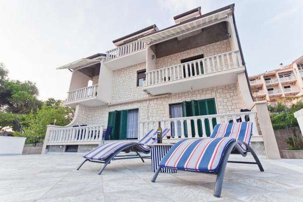 Luxusní apartmány pro příjemnou rodinnou dovolenou. Každý apartmán má několik samostatných pokojů a koupelen a bez ohledu na velikost poskytuje každé osobě dostatečné soukromí! Krásný výhled ze všech apartmánů na moře a ostrov Brač. Velká terasa připravená k použití vybavená velkými stoly a grilem učiní vaše letní večery nezapomenutelnými. Máme také venkovní sprchu pro rychlou solnou sprchu. Pouhé 3 minuty chůze od první pláže a moře. Pláž je vhodná pro děti i dospělé, oplývá rodinami v dobré náladě, kteří si užívají slunce a moře.