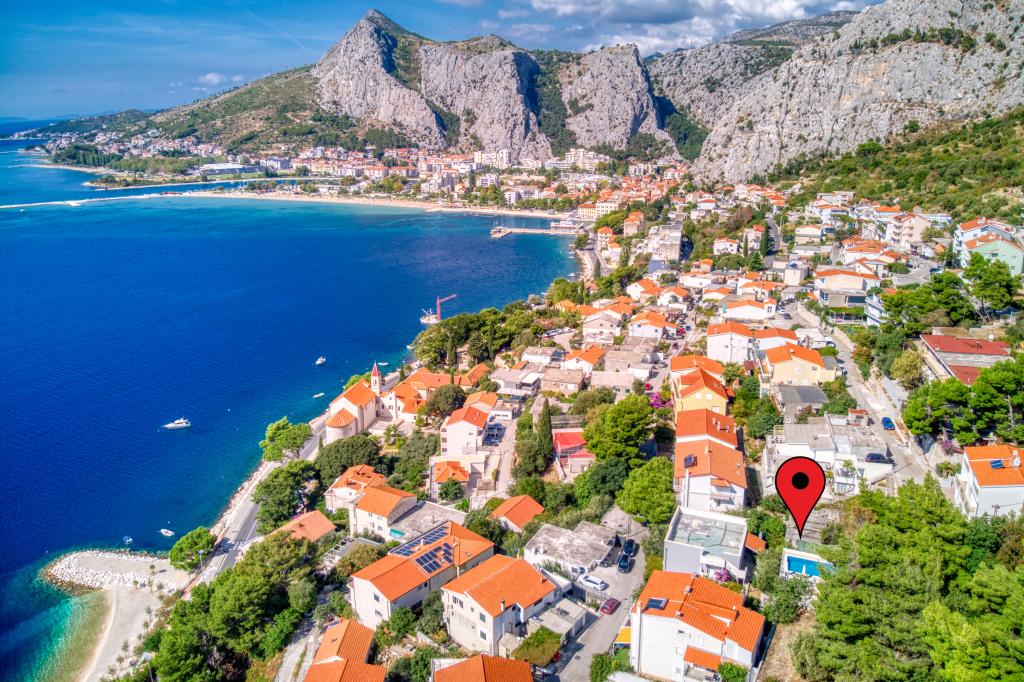 moderní apartmány v klidné lokalitě Omiš je obklopen středomořskou vegetací, s výhledem na moře.