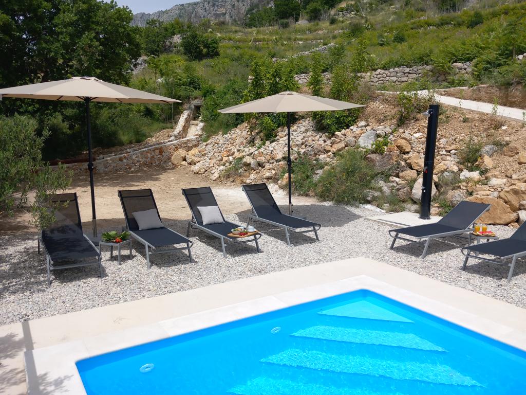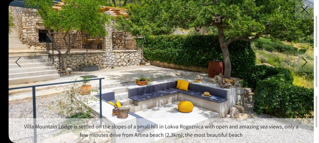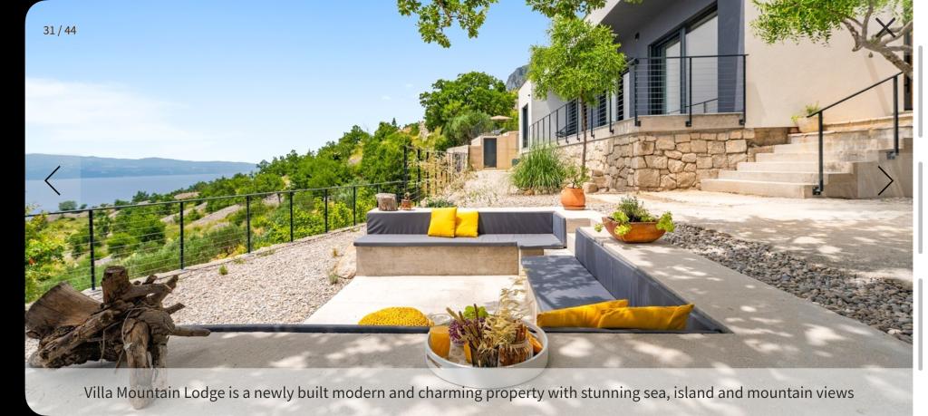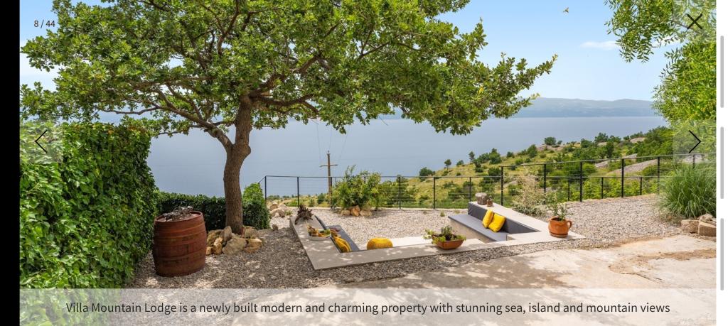 NOVÁ Vila Mountain Lodge s výhledem na moře Vila se 4 ložnicemi, vyhřívaným bazénem a panoramatickým výhledem na moře. Villa Mountain Lodge je nově postavená moderní a okouzlující nemovitost s úžasným výhledem na moře, ostrovy a hory as velmi roztomilým venkovním prostředím. Plně klimatizovaná vila se 4 ložnicemi, bezplatným Wi-Fi, prostorným obývacím pokojem, plně vybavenou kuchyní, půvabným venkovním jídelním koutem a salonkem, vyhřívaným bazénem, se nachází v klidné lokalitě na sjezdovkách Lokva Rogoznica, jen 2,3 km od pláž, 900m od restaurace. Je uspořádán v přízemí se 184 m2 užitečného interiéru na soukromém pozemku o rozloze 1 069 m2.