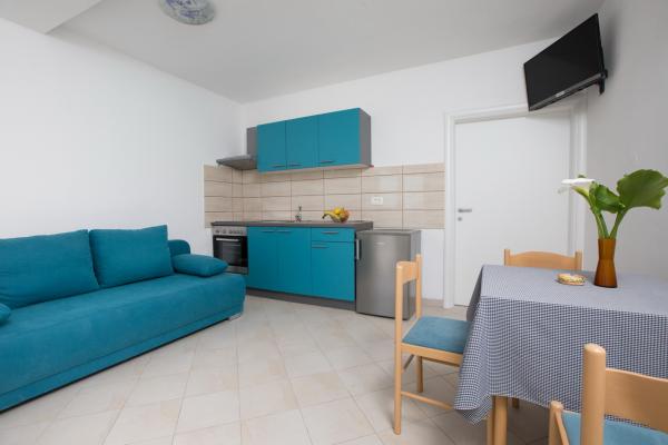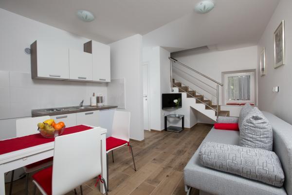Nově zrekonstruovaný byt s výhledem na moře. V areálu se nachází 5min chůze od centra města a ve stejné vzdálenosti k moři. zahrnuty k dispozici parkoviště. Wifi zdarma.