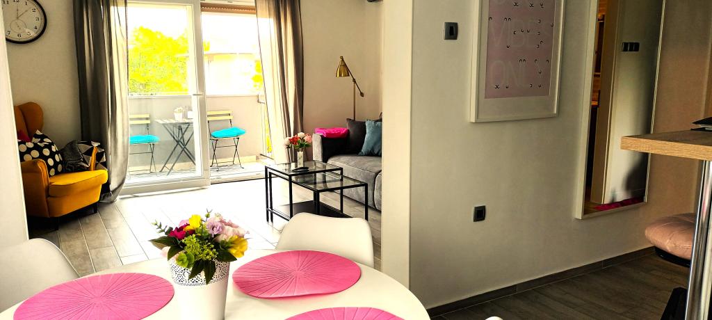 Moderní, nově zařízený apartmán, mimořádně příjemné prostředí, luxusně zařízená koupelna, pohodlný pokoj s manželskou postelí pro 2 osoby, plně vybavená nová kuchyně, prostorný obývací pokoj s luxusní rozkládací pohovkou, na které se vyspí 2 osoby. TV 160 cm/netflix, vysokorychlostní internet, Nachází se v klidné části Opatije, 800 metrů od moře a centra Opatije, 70 m od nákupního centra Spaar (10 minut chůze).