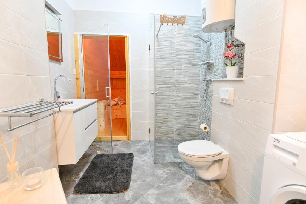 Parkování je soukromé a ZDARMA, nachází se před apartmánem. Apartmán nabízí finskou saunu (v apartmánu)! Další vybavení: klimatizace, topení, kávovar, mikrovlnná trouba, trouba, plně vybavená kuchyň, myčka nádobí, pračka, terasová souprava (stůl a židle), sprchový kout. Hlavní postel 160x200 Přistýlka: rozkládací pohovka 140x200 s vrchní matrací, pro 2 osoby.