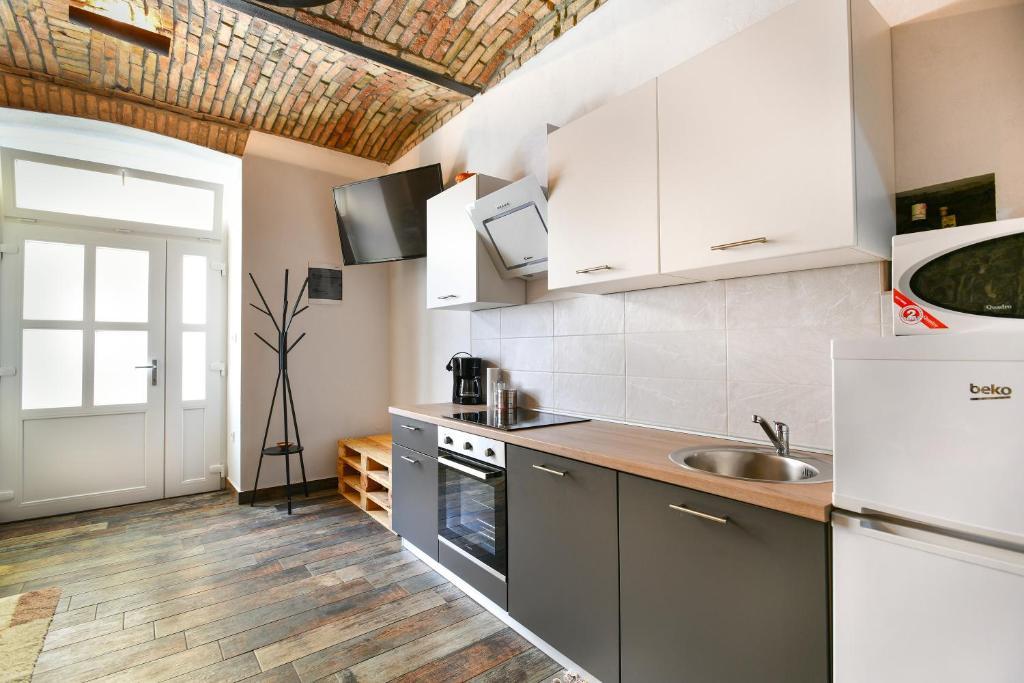 Moderní apartmán v kombinaci cihel a kamene, v centru Opatije, pouhých 20 m od obchodů, trhů, bank. Veškerá základní občanská vybavenost je do 5 minut chůze od ubytování. Apartmán se nachází v klidné boční ulici hned vedle hlavní ulice Opatije. Pláž je vzdálena 5 minut chůze. Jako součást staré budovy Villa Rosenberger má vlastní vchod. Skládá se z částečně oddělené ložnice, obývacího pokoje, kuchyně a koupelny se saunou, terasa/parkování.