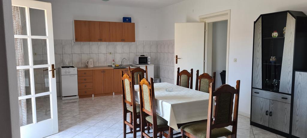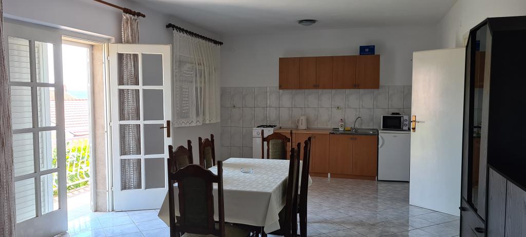 Byt v soukromém domě v prvním patře 100m2 s velkou terasou a výhledem na moře. Byt se skládá ze 2 ložnic, 2 5 koupelny, kuchyně, jídelna a obývací pokoj. Dům se nachází v blízkosti centra města Orebič, a 5 minut chůze od nejbližší pláže, a je v klidném místě, ideální pro rodiny s dětmi.