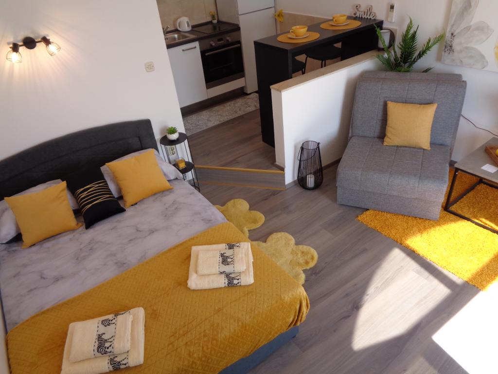 Renovovaný (2021) Studio M se nachází 3 metry od moře, na pěší zóně v Orebiči. Hosté mají povolen příjezd autem na parkoviště u apartmánu. Prožijte dovolenou na terase s výhledem na moře. Opalujte se a plavte pár metrů od apartmánu. Byt je vybaven klimatizací, bezplatným Wi-Fi připojením, televizí se satelitním příjmem a vším dalším, co vám zpříjemní pobyt. Pekárny, obchody, trhy, restaurace a vše, co byste mohli potřebovat, je pár minut chůze od hotelu. Zaparkujte auto a dovolená může začít!
