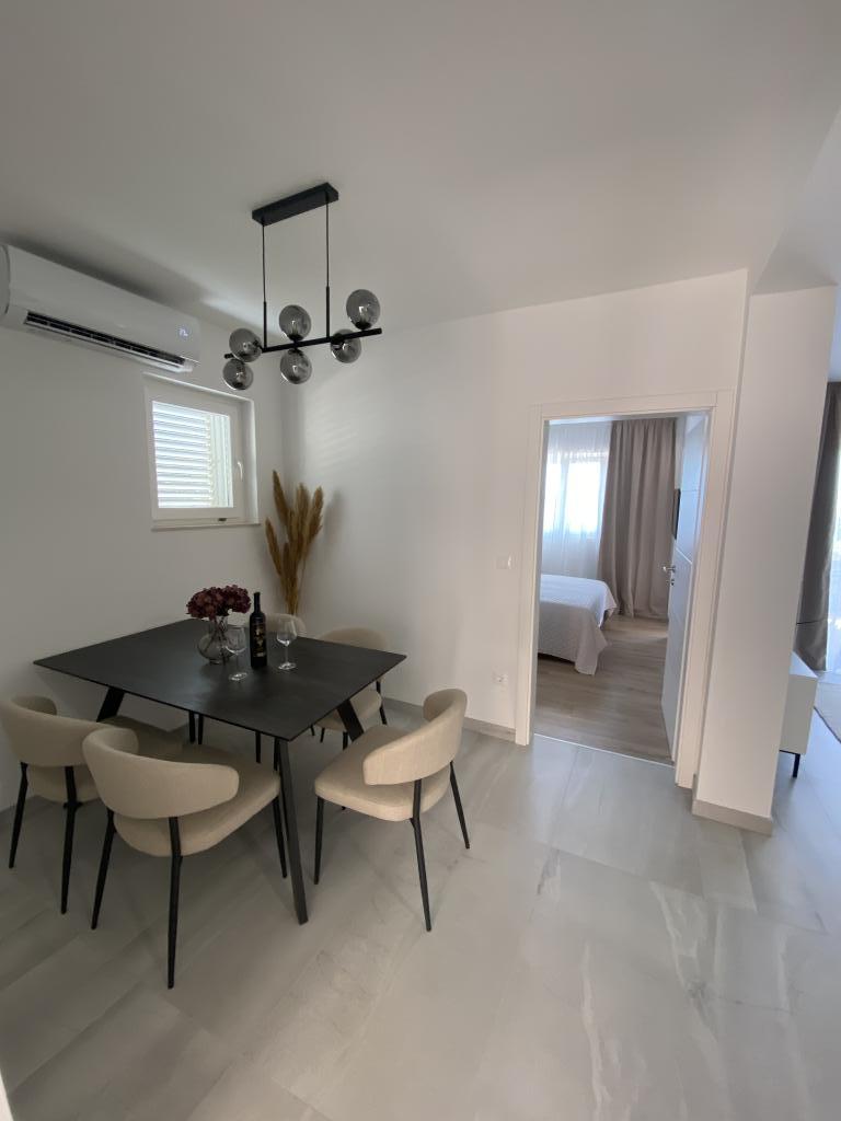 Plně vybavený a nově zrekonstruovaný byt. Nachází se 2 minuty chůze od pláže a 5 minut chůze od centra. První obchod se nachází 30 metrů od objektu. V centru se nachází restaurace, kavárna, rybí trh, tržnice, banka, pekárna,... Ubytování zahrnuje bezplatné parkování a WI-FI. V budově je ohniště, kde si můžete opékat. Apartmán má 2 terasy, jednu před vchodovými dveřmi se dvěma křesly k relaxaci a druhou na jižní straně s výhledem na moře.