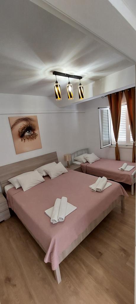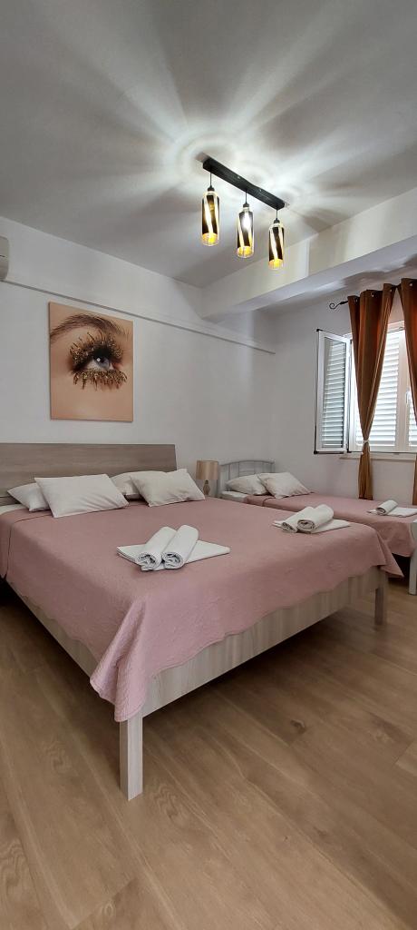 Orebić je ideálním klidným místem pro kompletní dovolenou s krásnou krajinou a krásným čistým mořem. Hlavní pláž Trsenica je vzdálena pouhých 200 m od ubytování. V blízkosti 50 m je supermarket, pekárna, kavárna, stánek s ovocem a zeleninou, restaurace, fotbalové hřiště... Každý apartmán má vlastní terasu. U objektu je hostům po celou dobu pobytu k dispozici vlastní parkoviště ve stínu a ohniště. Všechny apartmány jsou klimatizovány, klimatizace je zahrnuta v ceně, WI-FI (internet), v ceně je také pobytová taxa. Přejeme vám příjemný pobyt!