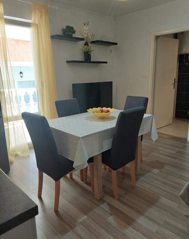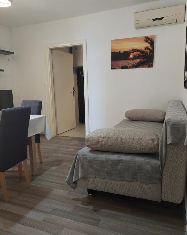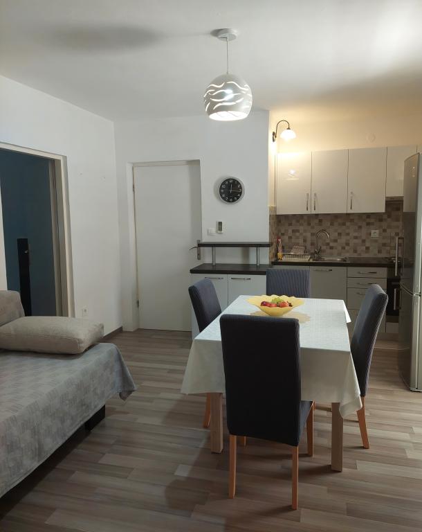 Ubytování je velmi dobré, vše čisté a uklizené. Byt má vše, co potřebujete k pobytu. Přátelští hostitelé. Byt vypadá naživo mnohem lépe než na obrázcích. Před apartmánem je obrovská terasa vhodná pro menší děti ale i k posezení, protože je celý den ve stínu. Doporučuji rodinám s malými dětmi, ale i všem, kteří chtějí strávit dovolenou ve výborném ubytování.
