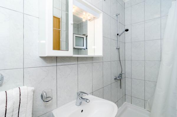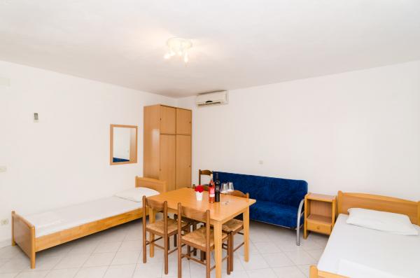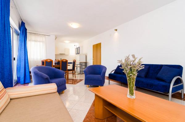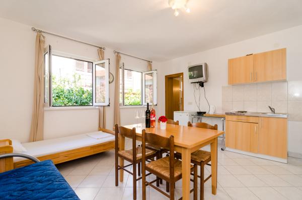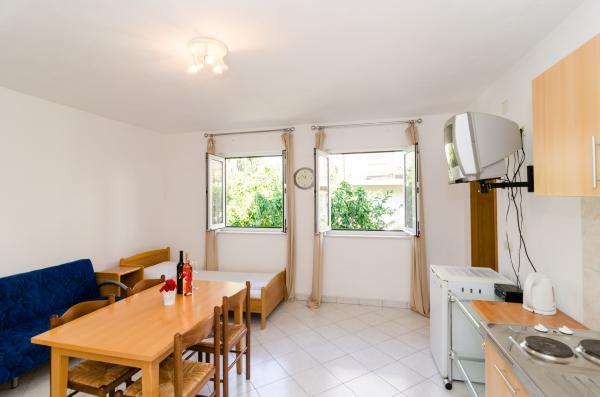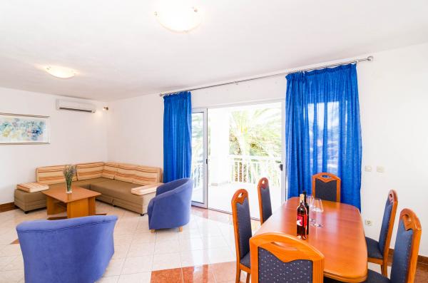 Nabízíme prostorné apartmány, 90m2 a 50m2, plný světla, který se pohodlně usadí rodiny s dětmi a páry. Naše zařízení se nachází v nejlepší pozici, v Orebic na pouhé 3 minuty chůze od krásné písečné pláže se stínem, který zajišťuje porost borovic. V blízkosti našeho domu se nachází supermarket, pekařství, obchod s ovocem a coffee bar, jako naše hosty speciální ceny říci v létě, kdy všechny potřebné ingredience na ruce. Na pouhých 100 metrů od našeho zařízení začíná krásnou procházku v Pelješac, který je u moře se táhne do centra města i mimo něj. Naši hosté mají zdarma bezdrátové připojení na internet, klimatizace a soukromé parkoviště.