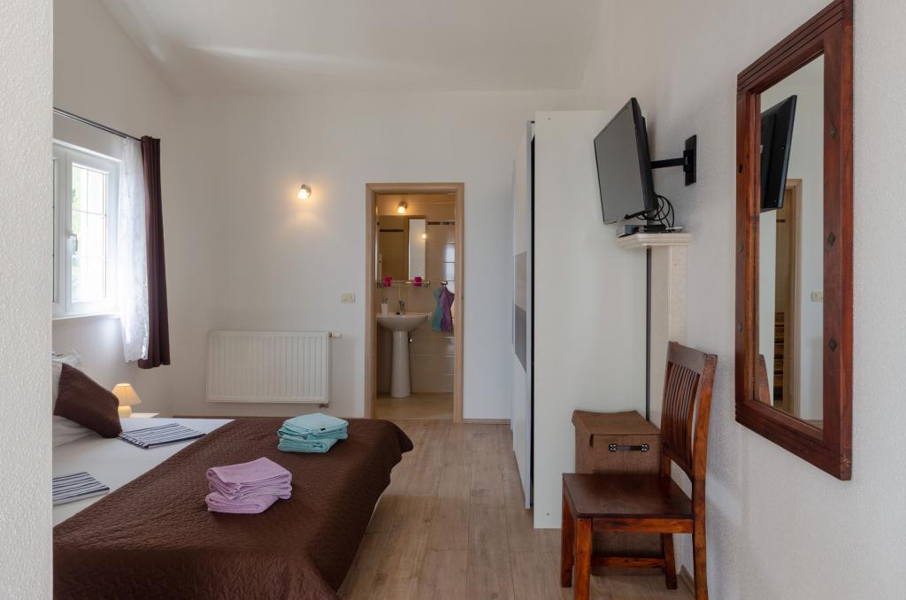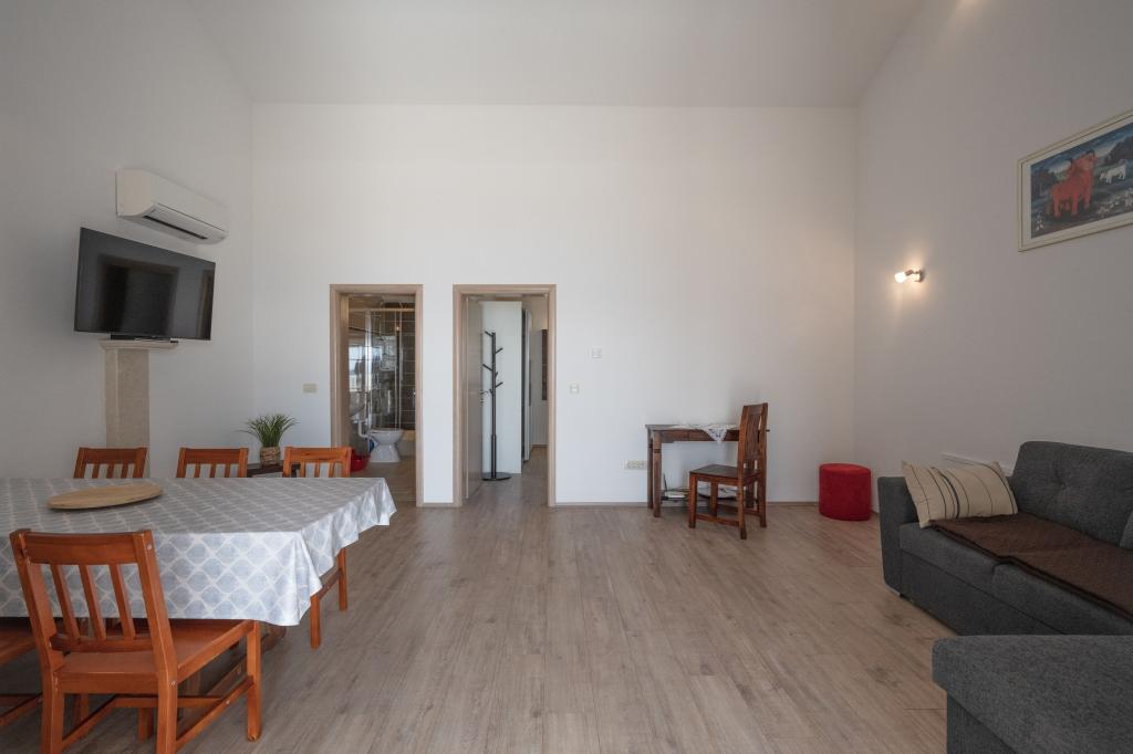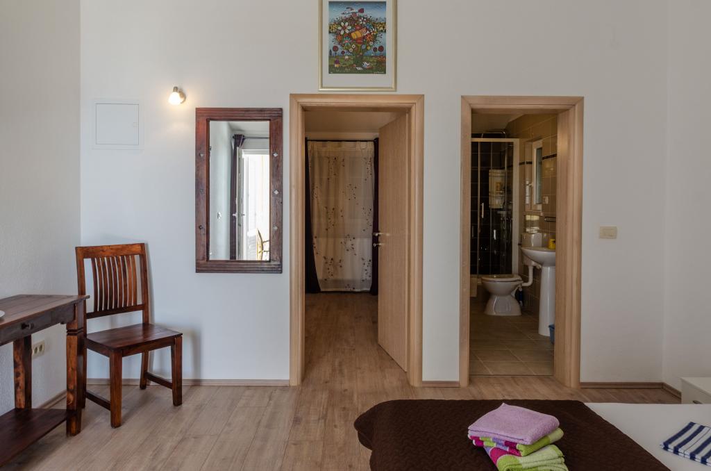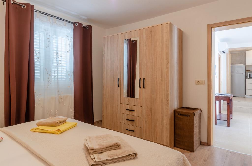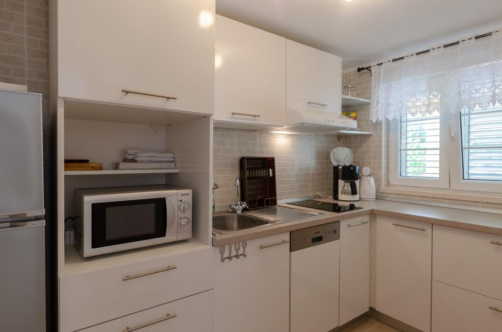 Skvělý byt. Prostorné, čisté, dobře vybavené. Velké pohodlné postele, terasa s lehátky obklopená udržovanou vegetací, krásný výhled na moře. Kolem je klid a mír. Nikdo tudy nejde, nikdo nechodí. Je to jako v ráji. Přístup do bytu je mírně do kopce nebo po schodech, ale je krátký a neunavující. Ale tím, že se vzdálíme od centra, získáme úžasnou uklidňující atmosféru, výhled a klid. Hosteska je velmi zdvořilá a pohostinná. Na všem mu záleží, díky tomu jsou takové a žádné jiné podmínky. Strávili jsme zde 2 týdny a rádi bychom zůstali déle. Nejlepší ubytování, které jsme měli v Chorvatsku za přijatelnou cenu.