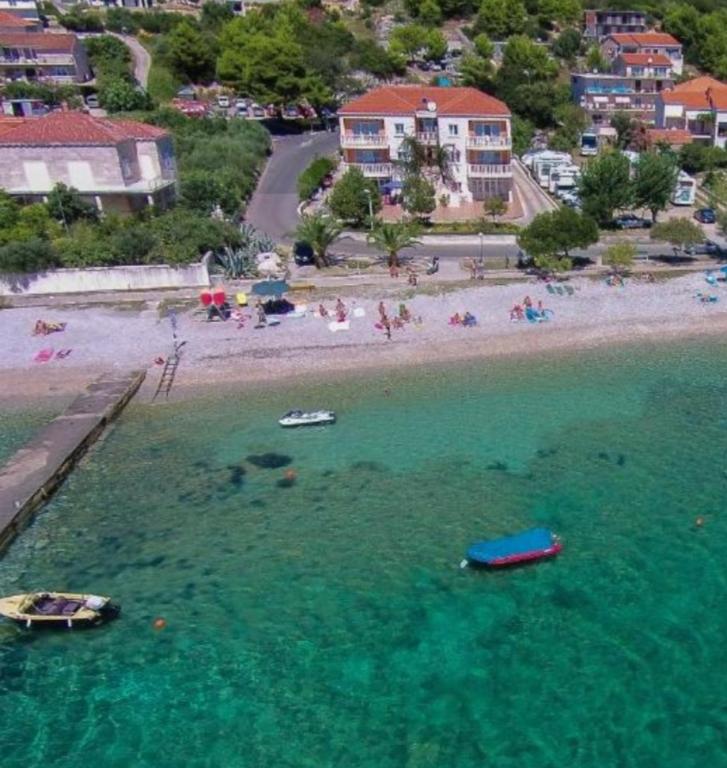 Plně vybavený apartmán, který se nachází v první řadě k moři. Objekt se nachází 20 metrů od pláže a 10 minut chůze do centra.