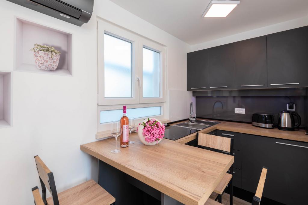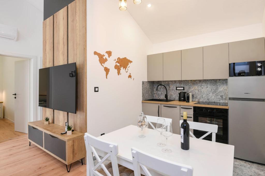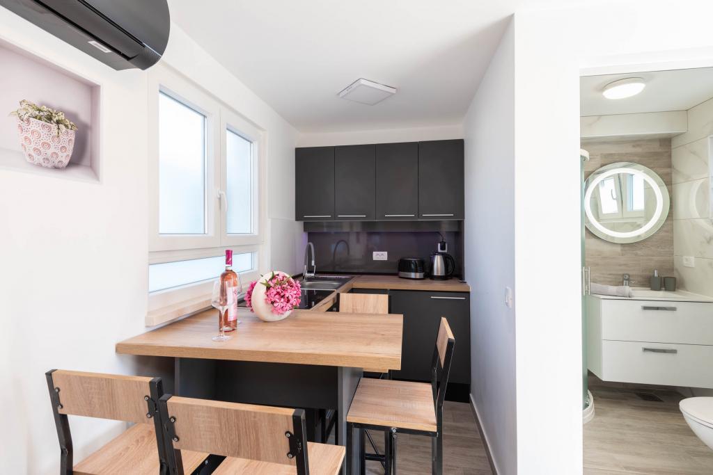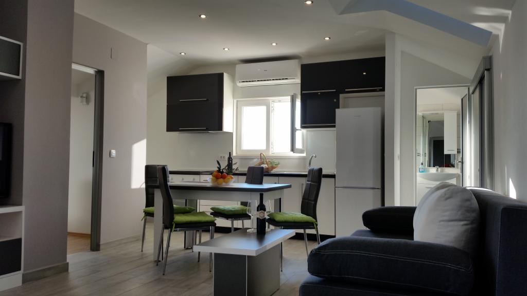 Moderně zařízené a plně vybavené apartmány s výhledem na moře. V blízkosti pláže, obchodů a restaurací.