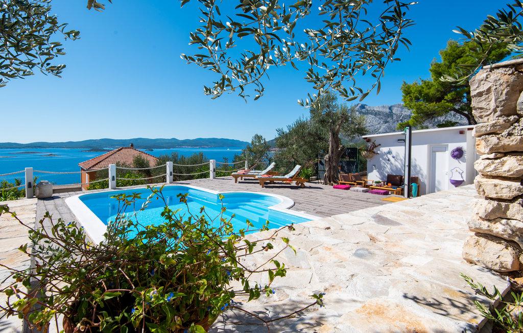 Postup je malé místo s několika domy, které se nachází 4 km od Orebiće. Má dlouhou vinařskou tradici a réva speciální odrůdy složením půdy, podnebím a sklonem terénu dává hrozny, ze kterých se vyrábí stejnojmenné špičkové víno. Welcome drink je láhev toho vína a brandy, které já osobně vyrábím z hroznů z mých vinic. Dům je na vyvýšeném místě, díky čemuž má krásný panoramatický výhled na Pelješský kanál, Korčulu (15 minut lodí z Orebiće), otevřené moře a Mljet. Velká terasa v 1. patře svým vybavením a výhledem poskytuje velké uspokojení všem věkovým kategoriím. Vzhledem i polohou jej můžeme přirovnat ke kapitánskému můstku. Během dne, kdy nejste na pláži nebo na některé z níže uvedených aktivit, každý najde uspokojení v hustém stínu spodní velké terasy. Stínidlo je zčásti tvořeno krytem a zčásti silnou vrstvou divoké révy. Na terase je gril, takže při používání nemusíte stát na slunci. Celá zahrada je oplocená a má extrémní soukromí a každý má co dělat. Má téměř 1000 m2 a je položen v kaskádě směrem k moři. Je porostlá středomořskými rostlinami, fíky, citrusovými plody a olivami. Pokud se ocitnete v době, kdy některé plody na dané rostlině mají sezónu, jsou vám k dispozici. Olivovníky poskytují příjemný stín. Skutečným centrem vaší každoroční dovolené je bazén s okolním zázemím a krásným otevřeným výhledem. Dokud to nevyzkoušíte, je těžké si představit, jaké potěšení najde člověk v osvěžení a relaxaci v jejích 32 000 litrech průzračné a teplé vody během denních veder nebo v osvěžení v noci s výhledem na hvězdnou oblohu. Cestou do bazénu nebo z něj se pěkně osprchujte ve venkovní sprše teplou vodou. Dům je daleko od hlavní silnice a není tam žádný hluk, takže někdy ticho působí abnormálně. Podlahy a vybavení domu jsou takové, abyste je mohli pohodlně využíva