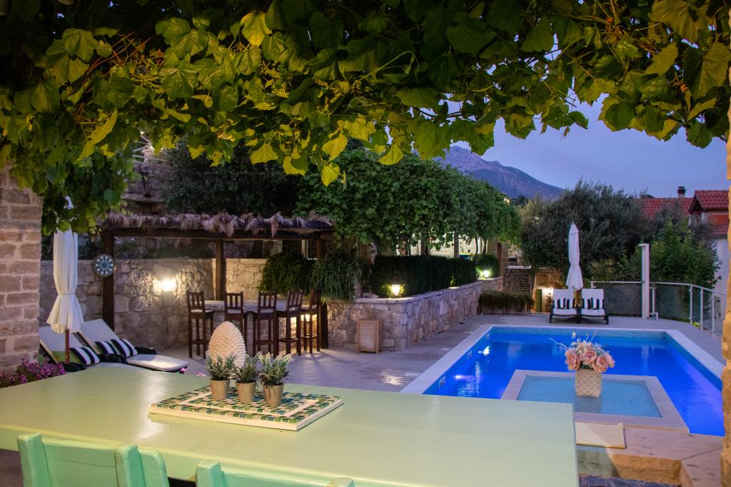 Ticho a atmosféra Středomoří jako kdysi, intimita a jednoduchost spojená s neokázalým luxusem se nachází ve starobylé vesnici Stankovic, postavené v 15. století, nad Orebičem. Tmavé dřevo v kombinaci s bělostí kamene, starožitné světle zelené odstíny okenic a luxusní interiér nenechají hosty lhostejnými. Vila ubytuje 14 osob, které nabízí venkovní bazén, jacuzzi se slopem, playstation místnost, posilovnu, dětský park, venkovní gril a dostatek stínu pro odpolední siestu. Celá nemovitost o rozloze 2000 m2 je ideální pro klidnou rodinnou dovolenou - skládá se ze tří domů, sedmi ložnic. Díky televizorům, klimatizacím, myčkám a dalším spotřebičům se budete cítit jako doma. Vesnice Stankovic je ideální základnou pro objevování ostrova nebo si můžete odpočinout na procházce přírodou s výhledem na moře, které voní středomořskou vegetací. Pouze 15 minut od města, pláže - a přitom si užívat náš skrytý poklad.