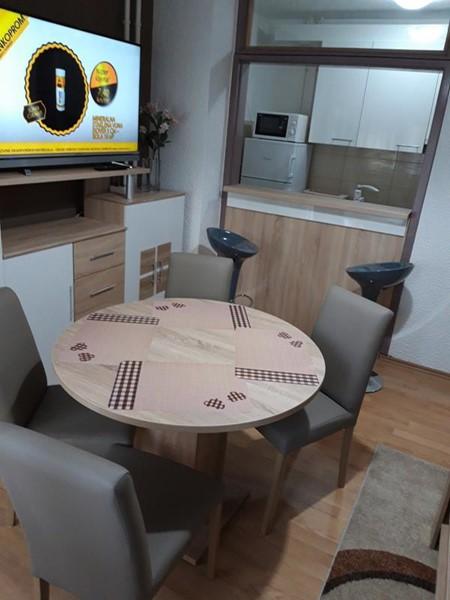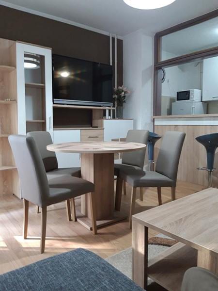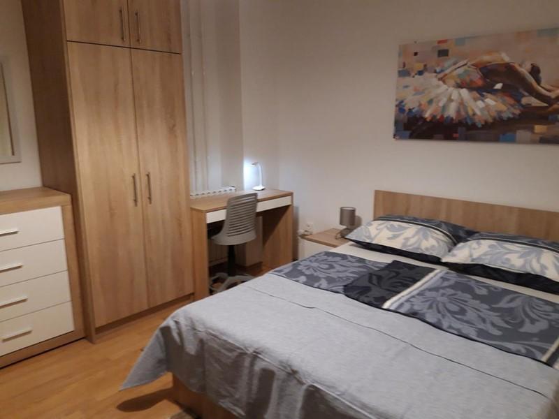 Apartmán "Centros" se nachází v horním centru města, v bezprostřední blízkosti hotelu Osijek. Nově zařízený prostor, plně vybavený. V obývacím pokoji je sedací souprava, kterou lze snadno rozložit na dvoulůžko, jídelní stůl, velká televize, bar s barovými židlemi. V ložnici je manželská postel pro dvě osoby a pohovka jako přistýlka, skříně, komoda, zrcadla, TV, psací stůl V kuchyni je stůl, vestavěná varná deska a trouba, lednice s mrazákem , myčka. V koupelně je sprchový kout, pračka.. Celý prostor je klimatizovaný, s ústředním topením a WiFi. Byt se nachází v centru města, v blízkosti všech důležitých městských zařízení (divadlo, katedrála, hotely, banky, promenáda podél řeky Drávy, restaurace, četné kavárny...).