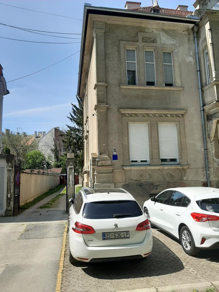 Pronajímám plně vybavený apartmán s nádvořím pro 2+2 osoby ve velmi klidné části Osijeku, naproti parku krále Tomislava a tenisovým kurtům, 50 m od lávky pro pěší a promenády, 250 m do Tvrđe (stará část města) a stejně daleko do centra. Slepá ulice bez většího provozu, bezplatné parkování zajištěno ve dvoře. Nedaleko se nachází hlavní tržnice (cca 200 m) a hlavní pošta, pekárna, zdravotní středisko, lékárna atd.