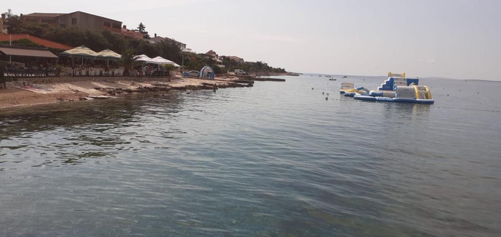Plně vybavený apartmán v klidném místě Mandre, na ostrově Pag. V blízkosti pláže, parkoviště, klimatizace, gril, výhled na moře, sítě proti komárům, wifi, satelitní TV, tv.