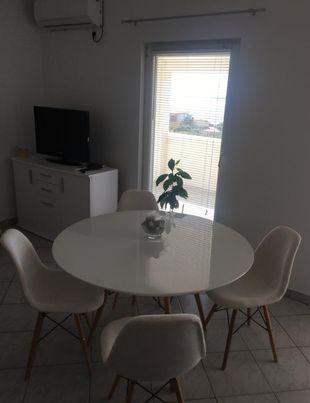 Kompletně zařízený byt (40 m2) na ostrově Pag (Mandre). Byt má 1 ložnici s manželskou postelí, obývací pokoj s rozkládací pohovkou, kuchyň, koupelnu se sprchou a velkou terasu (25 m2). Byt se nachází v rodinném domě v prvním patře v blízkosti centra, poskytuje vám výjimečný klid a ticho. na dvoře velká zahrada se stoly, krbem, hlídané parkoviště ..