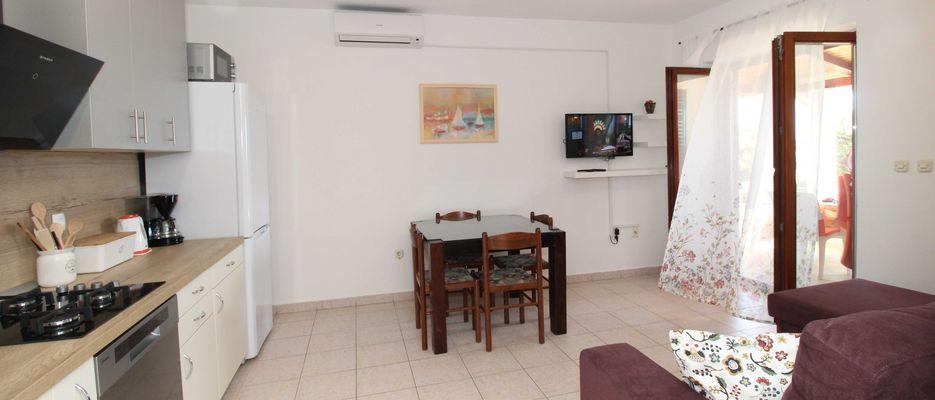 Naše apartmány se nacházejí 20 metrů od pláže v městečku Mandre, ostrov Pag. Jsou ideální pro rodinnou dovolenou. Dům se nachází na klidném místě s velkou zahradou. Uvnitř domu je velké parkoviště, gril ..