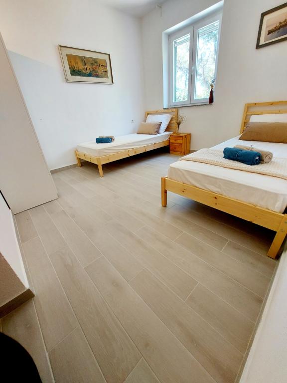 Mandre, turistická a rybářská vesnice na ostrově Pag, se nachází na jižní straně ostrova s krásným výhledem na Silbu a Olib a ostrůvky Maun a Škrda, které jsou plné zátok a krásných pláží. Náš dům se nachází v první řadě u moře, vedle kamenité a oblázkové pláže, stačí opustit dvůr, přejít pláž a zaplavat si v křišťálově čistém moři! Apartmány jsou plně vybavené, obklopené prostorným dvorem s přírodním stínem. Bezplatné parkování se nachází přímo před apartmánem. Je to skvělé místo pro odpočinek rodin s dětmi a milovníky přírody. Mandre má členité pobřeží s 3 km dlouhou promenádou a oblázkovými plážemi, je 14 km od Novalje a Zrć, 16 km od města Pag a asi 60 km od historického města Zadar. S krásným západem slunce, vůní soli a šumem moře si přijďte užít naše místo Na prostorném dvoře je možné uschovat kola a SUP-board na veslování.