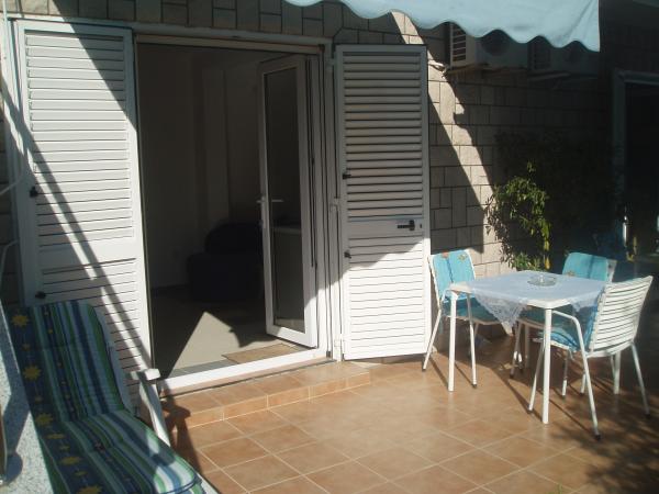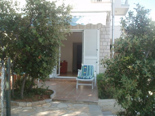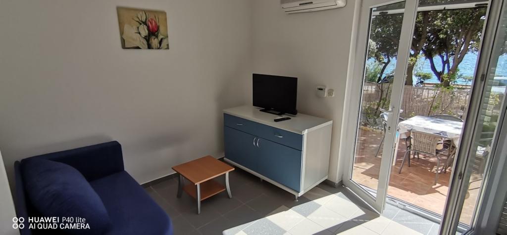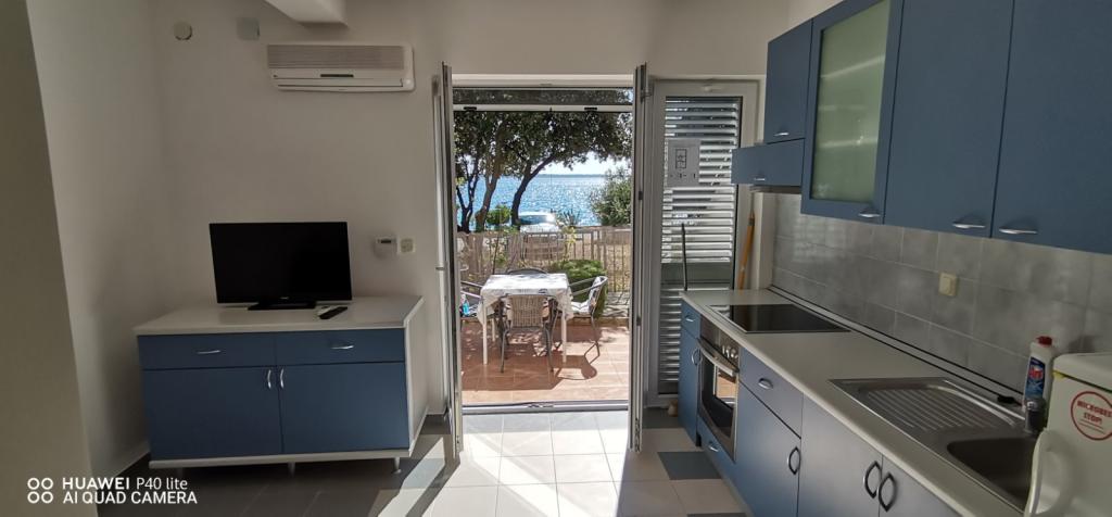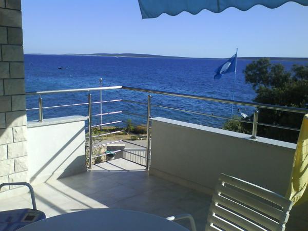 Apartmány se nacházejí v nejatraktivnější části Mandre, v první řadě u moře, vedle kamenité a oblázkové pláže. Na rozdíl od většiny ostatních turistů nemusíte nosit těžké tašky, stačí přejít ze dvora, přes pláž a zaplavat si v křišťálově čistém moři. Pokud chcete kávu, zmrzlinu nebo dostanete hlad, 180 m od apartmánu začínají kavárny, restaurace, pekárna, tabák, obchody, malý trh, rybí trh, bankomat, směnárna a nedaleko je kostel Panny Marie Sněžné. Apartmány jsou plně vybaveny k užívání.