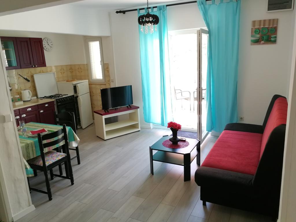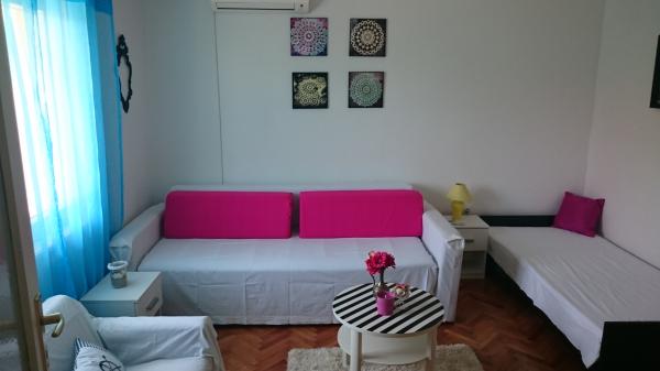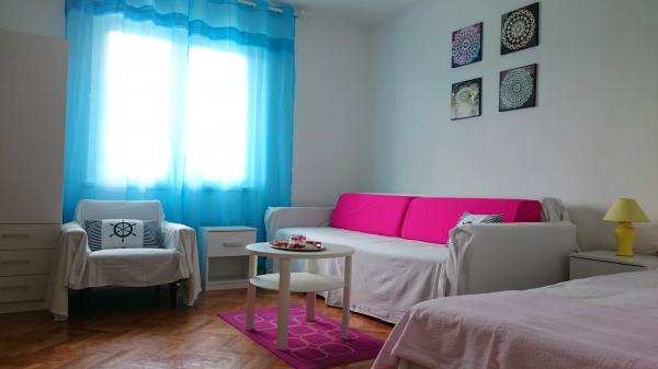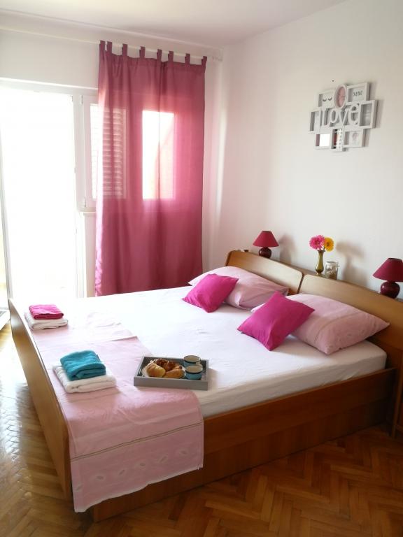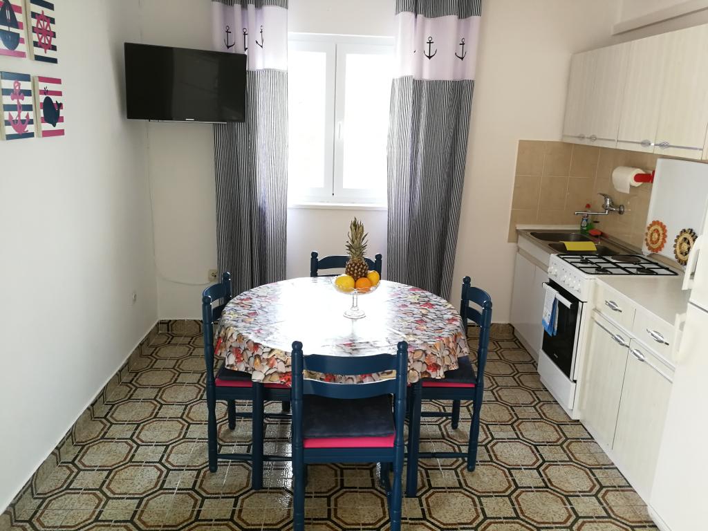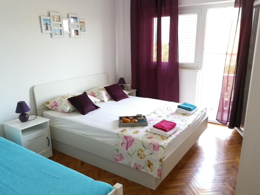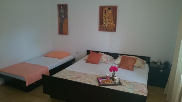 Okouzlující apartmány s výhledem na moře, který se nachází 10 minut chůze od centra města a 100 m od hlavní pláže. Apartmán Hvězda v prvním patře má dvě ložnice, jedna s manželskou postelí a samostatným lůžkem a druhá s manželskou postelí, balkonem s výhledem na moře, koupelna, kuchyň, TV, satelit, Wi-Fi, klimatizaci a velkou terasu s výhledem na vchod do bytu. Byt flitry v prvním patře má jednu ložnici s manželskou postelí a samostatným lůžkem, balkon s výhledem na moře, koupelna, kuchyň, TV, satelit, Wi-Fi, klimatizací a velkou terasu u vchodu do bytu. Byt krajka je v přízemí má jednu ložnici s manželskou postelí a samostatným lůžkem, obývací pokoj s rozkládací pohovkou, koupelna, kuchyň, TV, satelit, Wi-Fi, klimatizace.