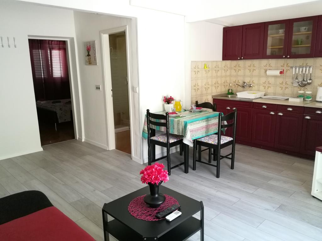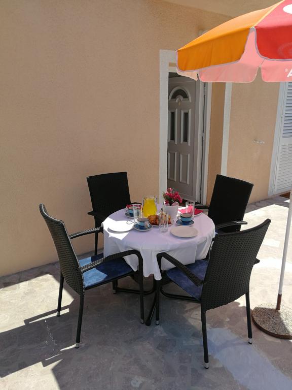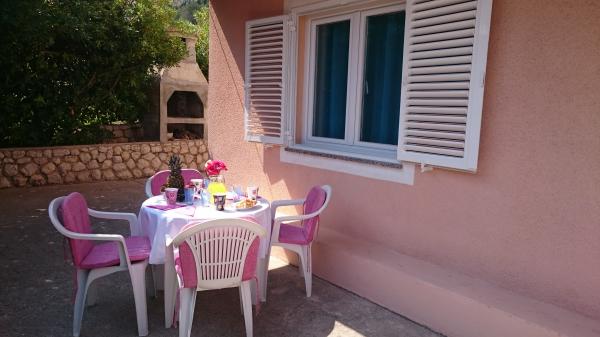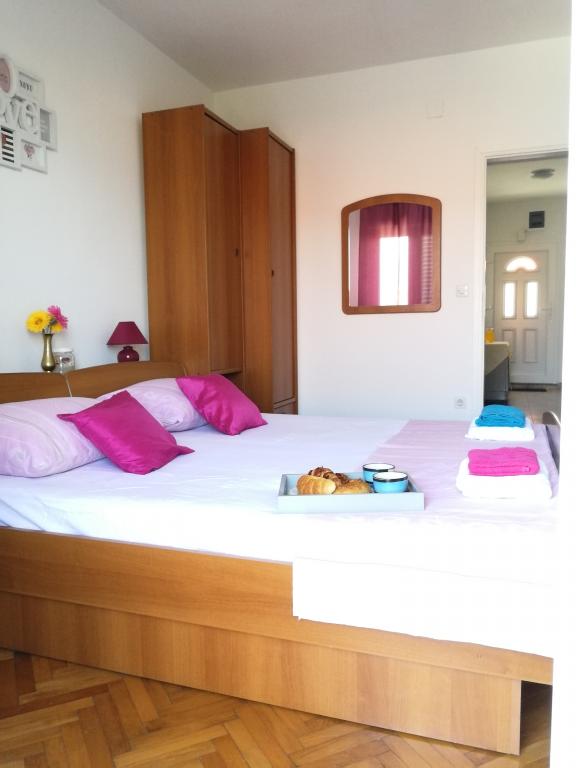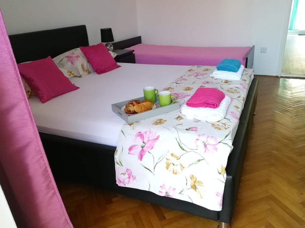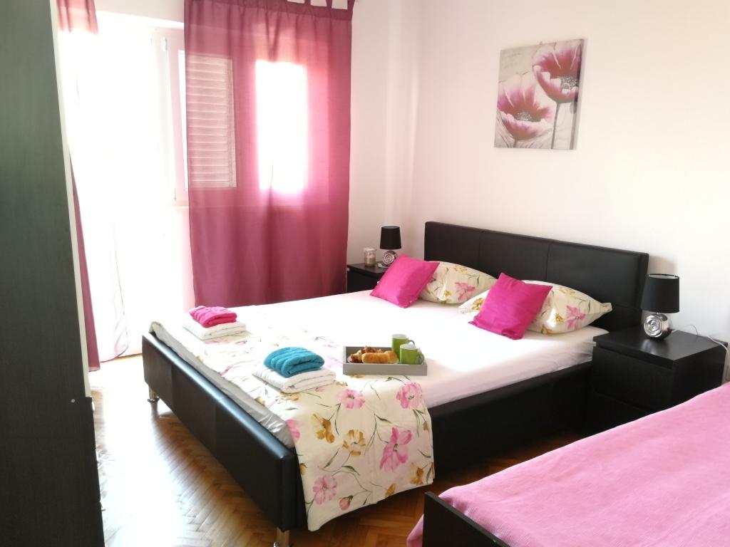 Okouzlující apartmány s výhledem na moře, který se nachází 10 minut chůze od centra města a 100 m od hlavní pláže. Apartmán Hvězda v prvním patře má dvě ložnice, jedna s manželskou postelí a samostatným lůžkem a druhá s manželskou postelí, balkonem s výhledem na moře, koupelna, kuchyň, TV, satelit, Wi-Fi, klimatizaci a velkou terasu s výhledem na vchod do bytu. Byt flitry v prvním patře má jednu ložnici s manželskou postelí a samostatným lůžkem, balkon s výhledem na moře, koupelna, kuchyň, TV, satelit, Wi-Fi, klimatizací a velkou terasu u vchodu do bytu. Byt krajka je v přízemí má jednu ložnici s manželskou postelí a samostatným lůžkem, obývací pokoj s rozkládací pohovkou, koupelna, kuchyň, TV, satelit, Wi-Fi, klimatizace.